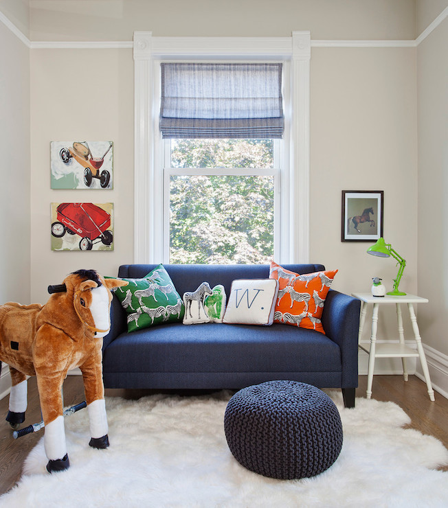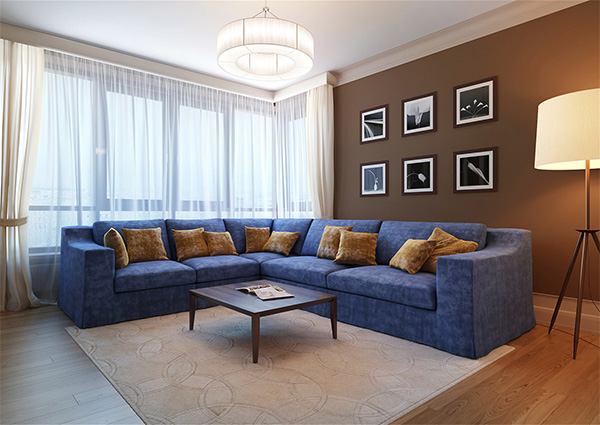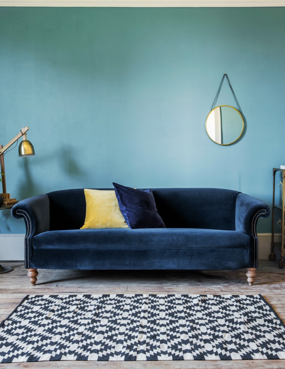 Un canapé bleu est approprié dans une pièce avec un niveau d'éclairage suffisant