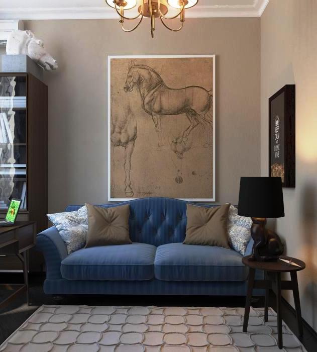 - Le choix du style pour l'intérieur de la pièce avec un canapé bleu