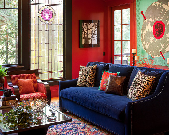 - Rouge - choisissez des personnes audacieuses et ambitieuses. L'endroit principal sera un canapé aux tons bleus.