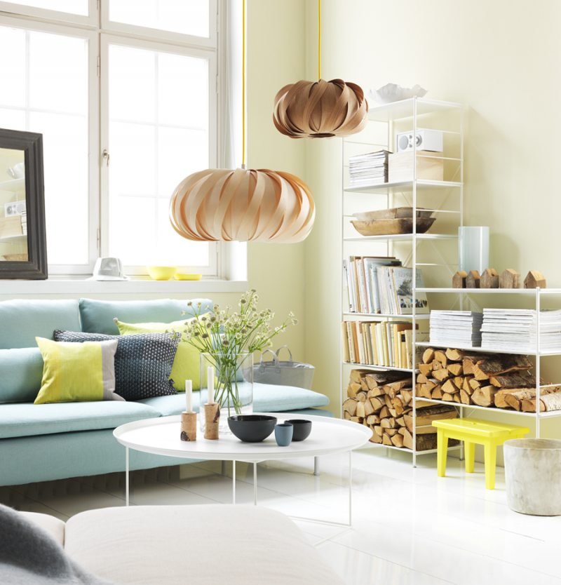 Un canapé jaune placé le long d'un mur clair ajoutera de la fraîcheur et de la beauté à l'intérieur