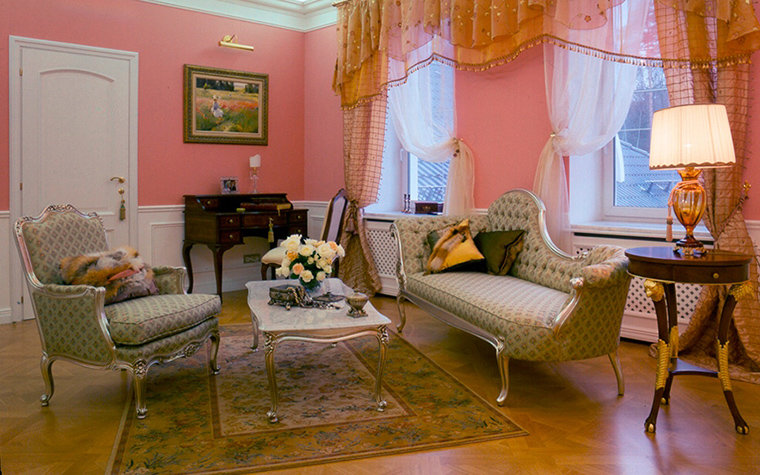 Le rose crée une sensation de tendresse, de bonheur, de romance et aide à se détendre. Parfait pour les classiques.Cependant, le rose attire l'attention, par conséquent, dans la pièce, il doit être dilué avec d'autres couleurs neutres - blanc, gris clair ou beige. Sinon, l'intérieur aura l'air un peu oppressant. Lorsqu'il est utilisé dans de grandes pièces, il est judicieux d'ajouter des accents de bleu.