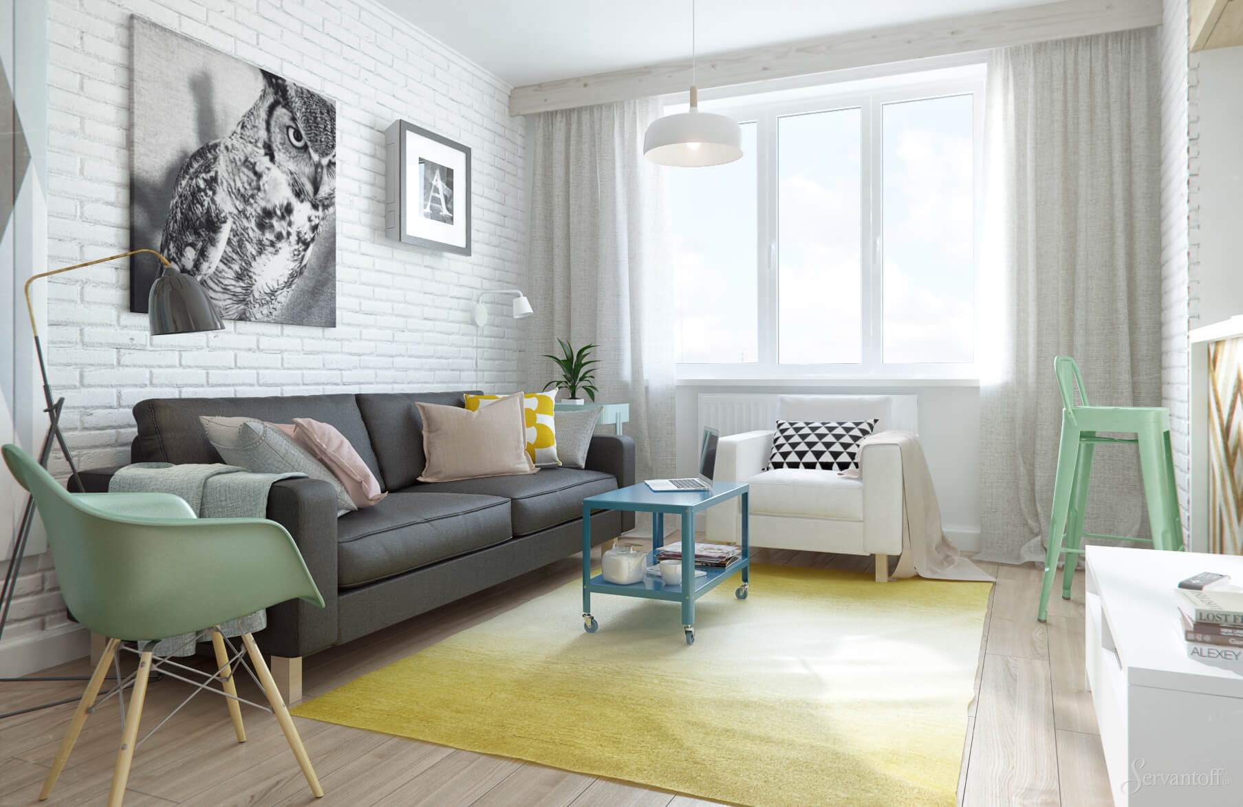 Le salon de style scandinave sera parfait dans les petits appartements. L'essentiel est de ne pas dévier des règles de base lors de la décoration intérieure.