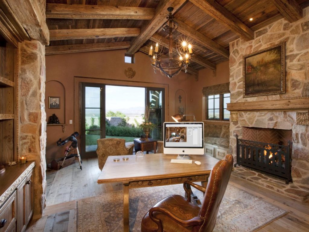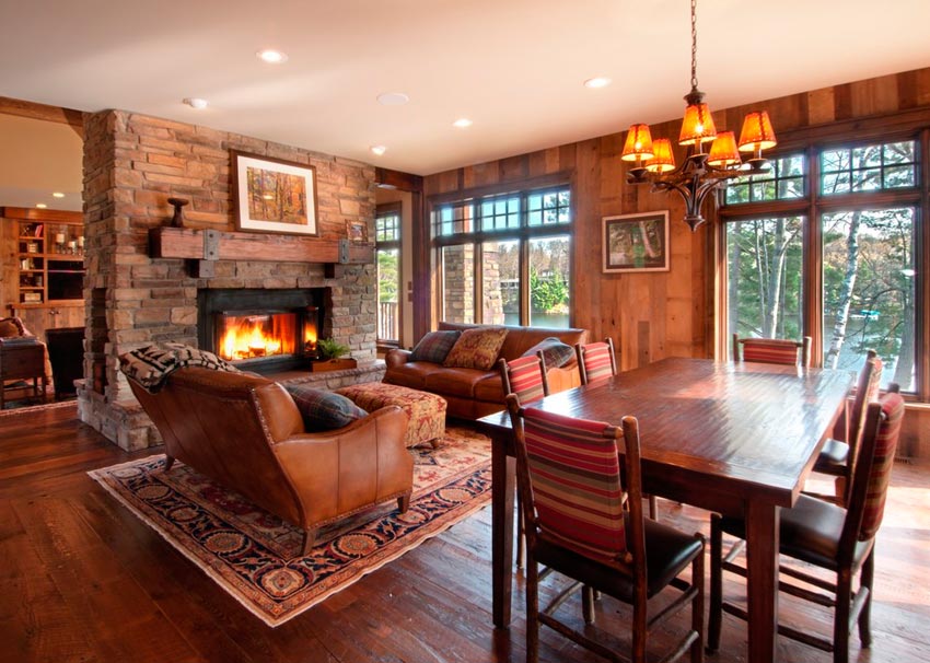 Une vraie cheminée et un chalet réchaufferont par temps frais et décoreront dignement l'intérieur du salon