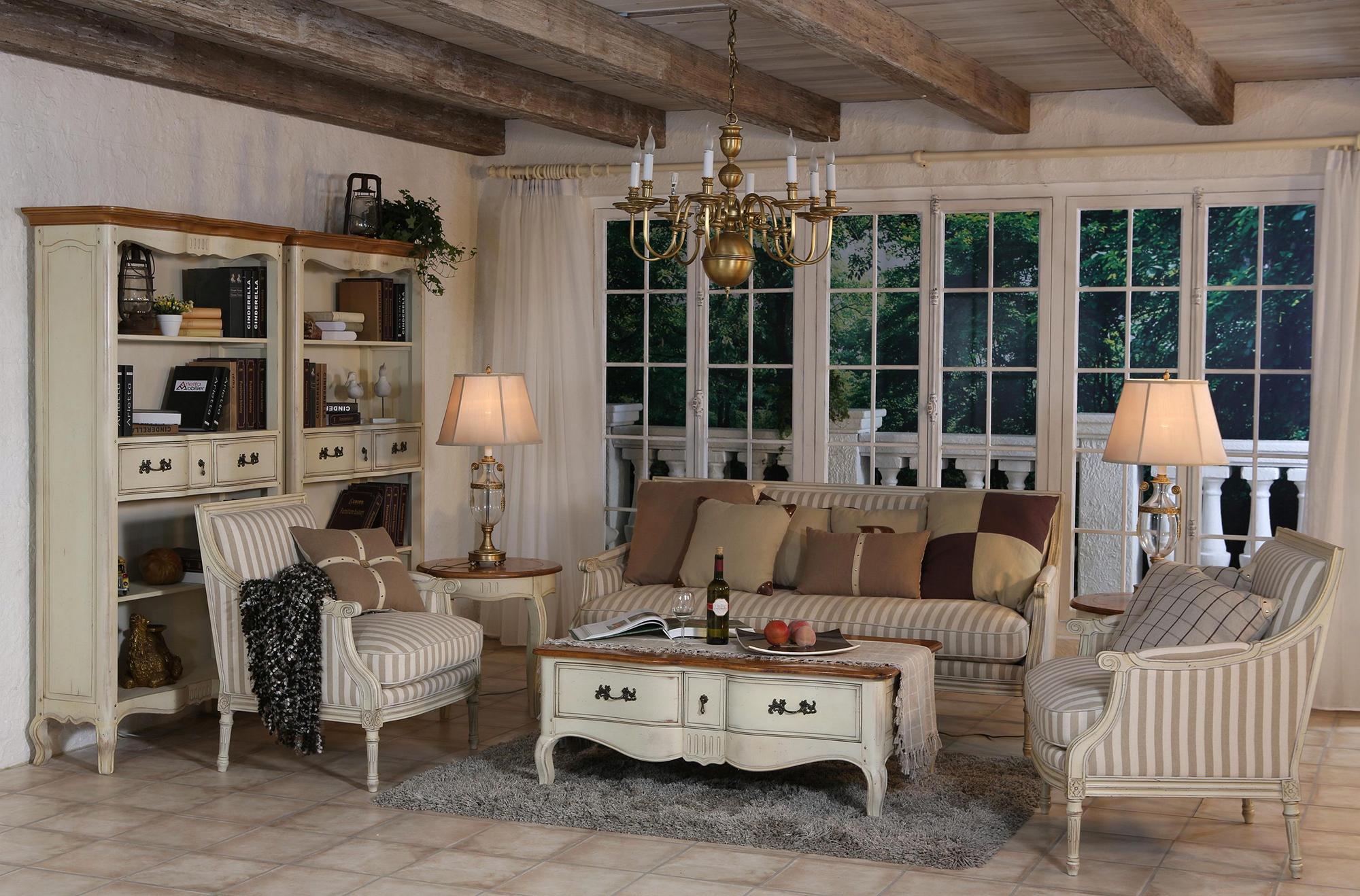 Pour le salon, vous avez besoin d'un canapé avec fauteuils, de bonne qualité, vous pouvez en cuir ou en textile dense. Vous pouvez ajouter un pouf, si l'endroit le permet. Une table basse pour une tasse de café et un livre est un must.