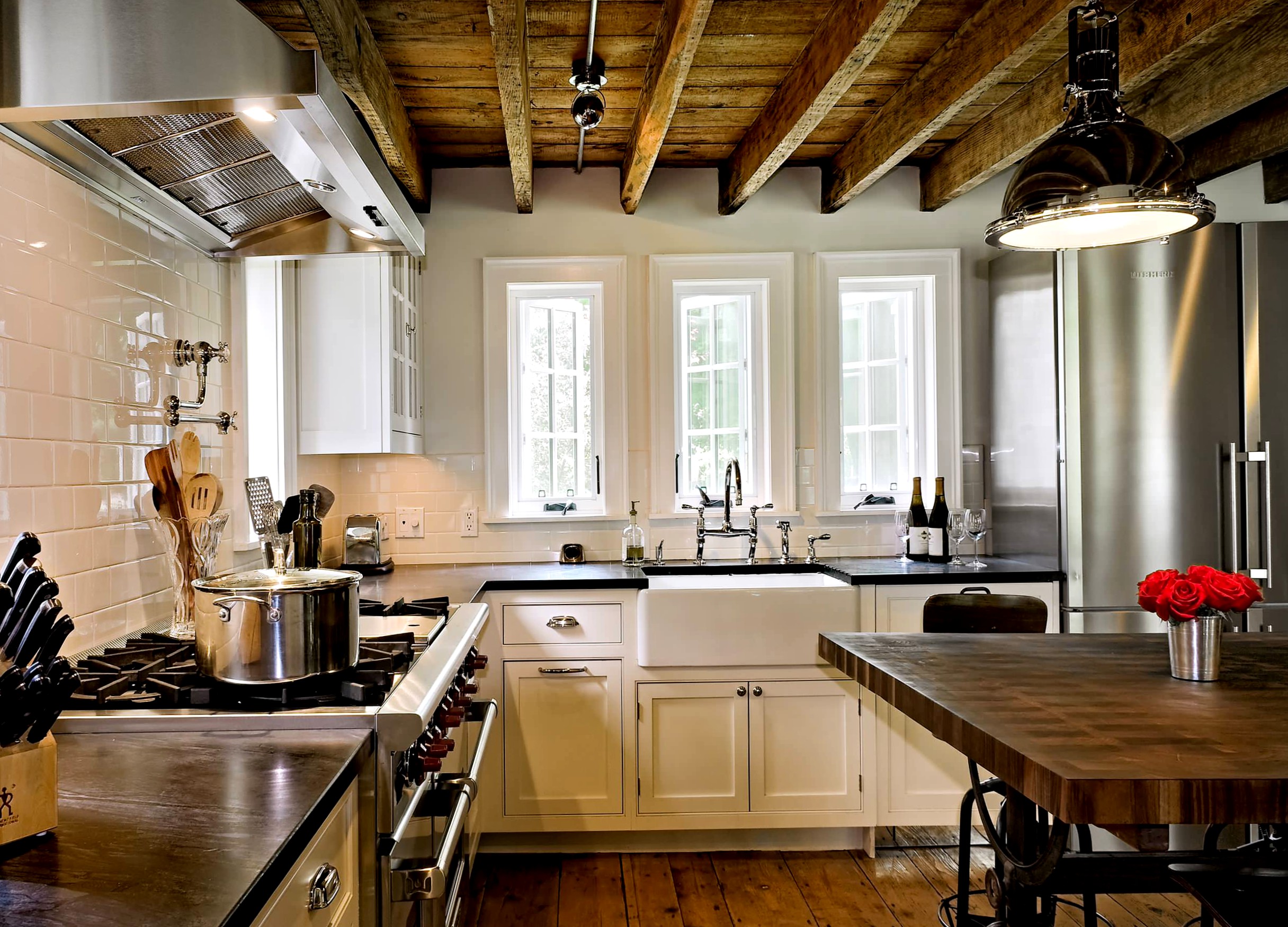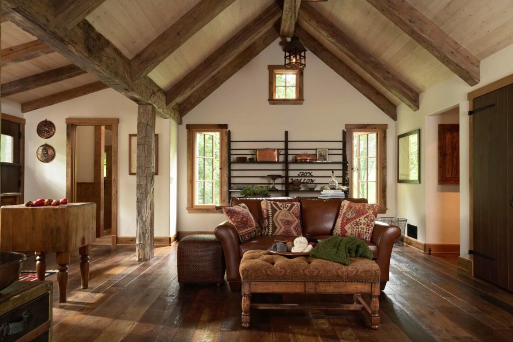 A l'intérieur de la maison de campagne, des poutres en bois seront appropriées