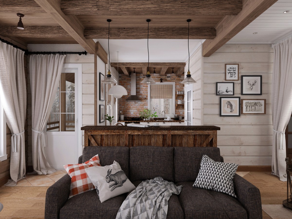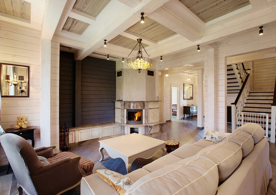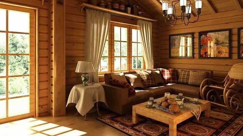 L'intérieur d'une maison en bois est plus facile à concevoir dans le style d'un chalet alpin