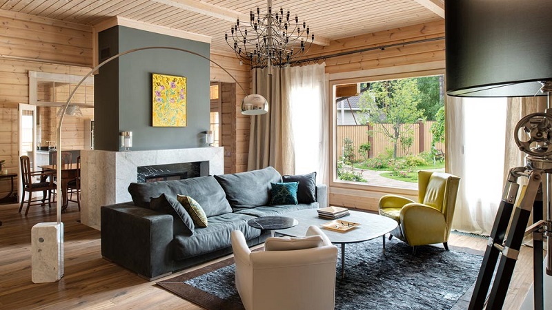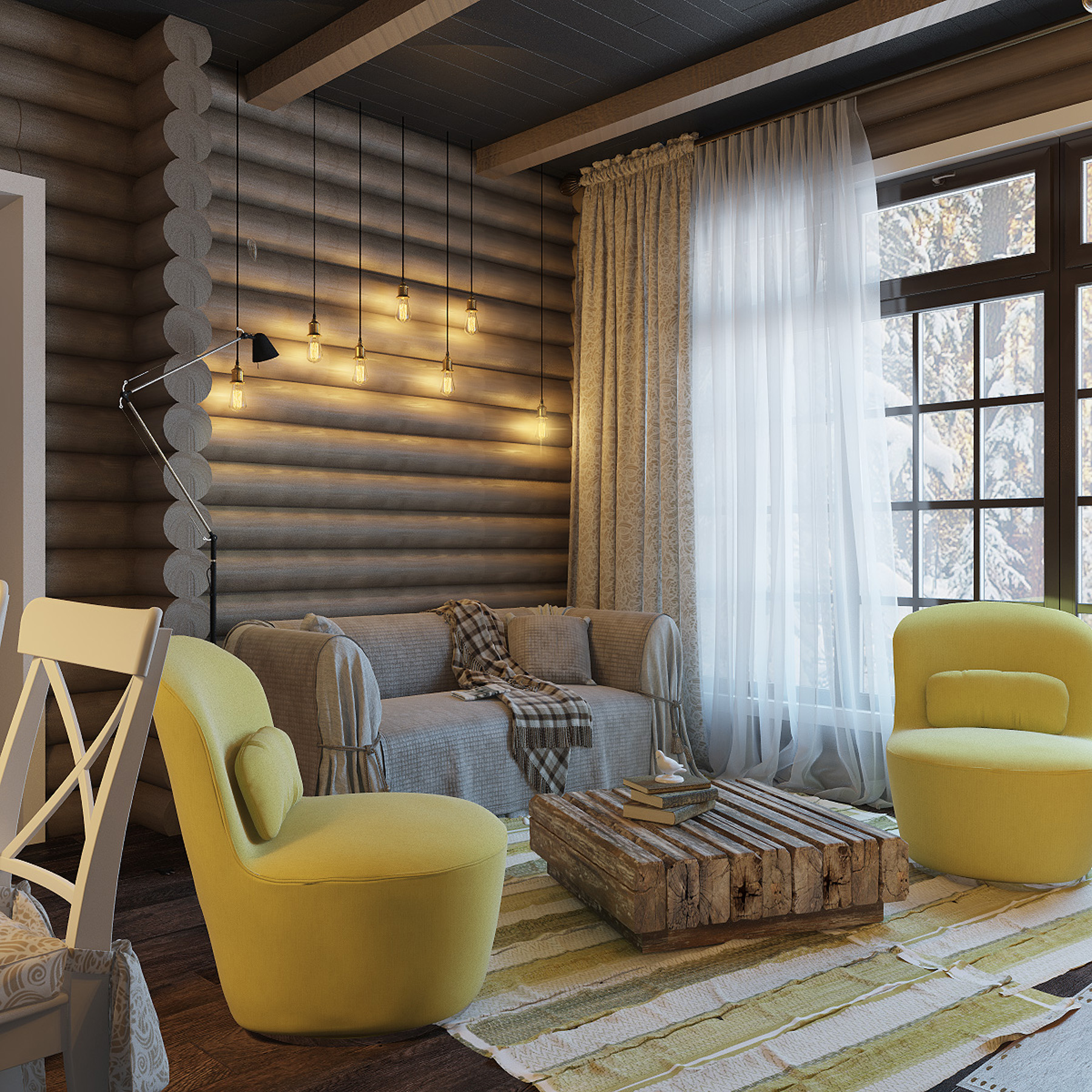 Dans toute maison moderne, il doit y avoir beaucoup de lumière, et en particulier cela s'applique au chalet. Plus il y a de fenêtres ici, plus la lumière est naturelle, plus la pièce sera confortable. Mais l'éclairage artificiel doit être pris en charge.