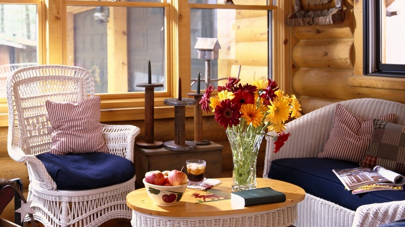 Tout devrait être fait de matériaux solides et durables, car pendant longtemps vous ne serez peut-être pas ici, ou peut-être que le chalet restera froid pendant les semaines ou même les mois d'hiver. Assurez-vous de prendre en compte la poussière, l'humidité et la température lors du choix des matériaux de décoration. Et vous ne voudrez certainement pas faire de réparations ici souvent. Choisissez donc le design «pendant des siècles» afin de ne pas avoir à repeindre ou recoller quoi que ce soit dans quelques années.