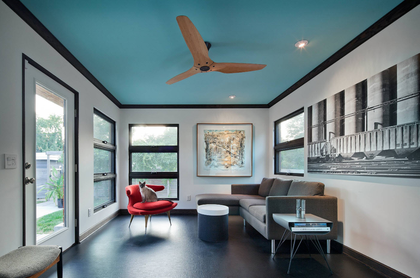 Une belle grande image au centre de la pièce doit être choisie s'il n'est pas prévu de recouvrir le sol d'un tapis.