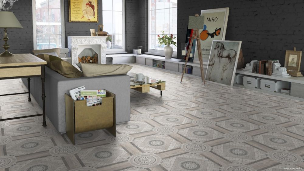 Si vous le souhaitez, vous pouvez choisir le linoléum avec une imitation de revêtement en céramique.