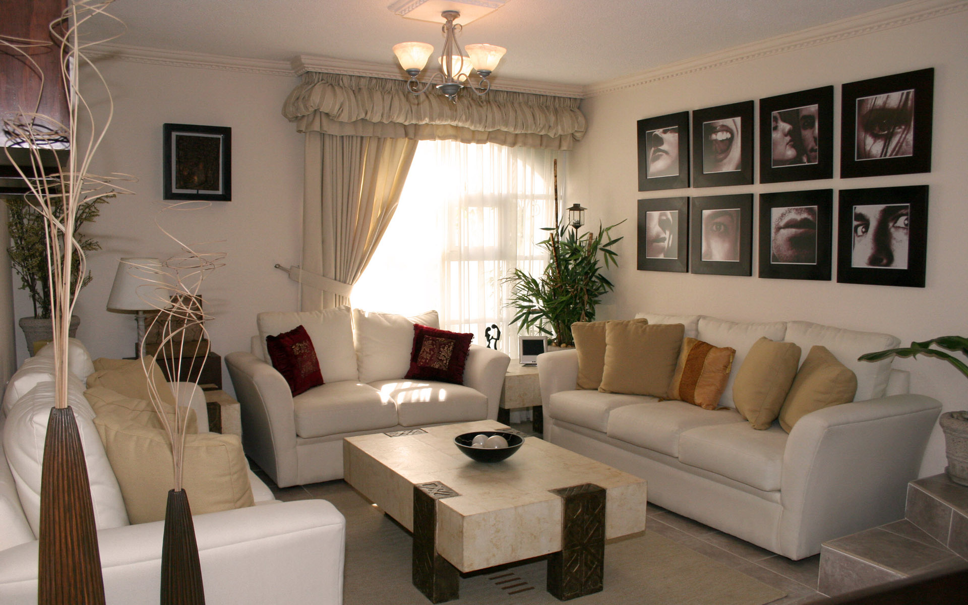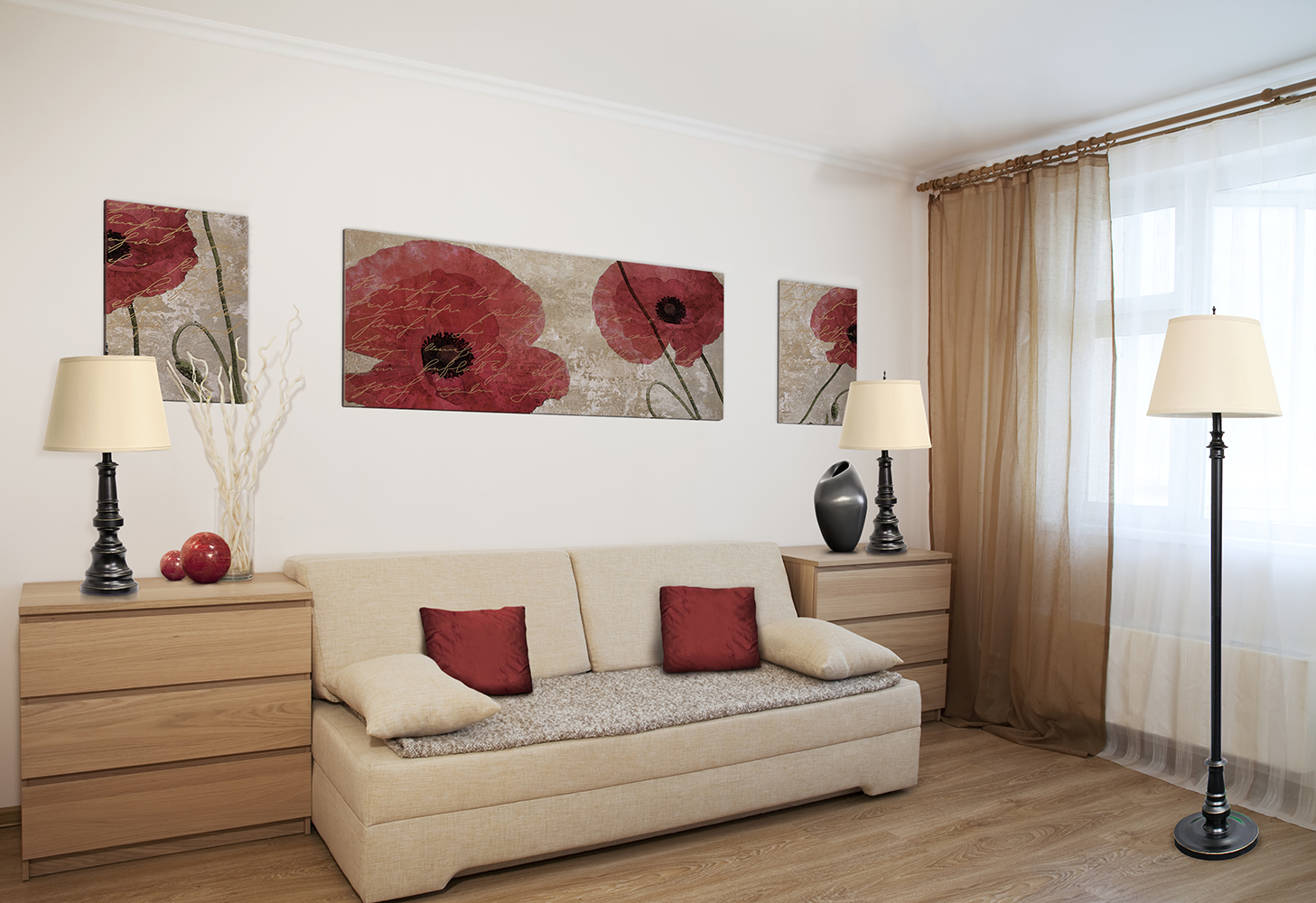 Technique de décoration de salon classique - peintures ou photographies au-dessus du canapé