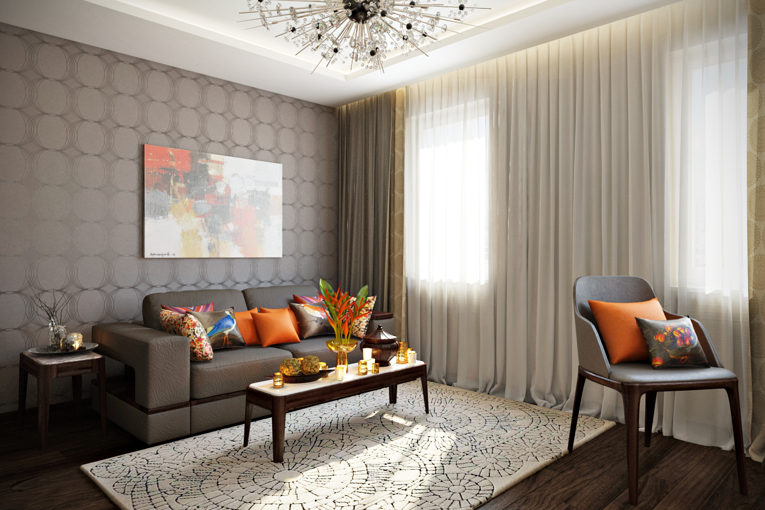 Il n'est pas nécessaire de concevoir le salon exclusivement dans des couleurs vives. Des accents lumineux apporteront vie et énergie à la décoration intérieure.