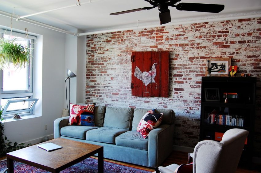Pour créer un design pour un petit salon dans le style loft, des meubles bas et minimalistes de couleur gris neutre, marron ou noir, des étagères ouvertes, une petite table avec des pieds en fer forgé et un plateau en verre, plusieurs lampes similaires aux lampes à incandescence ordinaires seront utiles. Les murs peuvent être peints ou recouverts de plâtre, l'imitation du béton, de la brique ou de la maçonnerie en parpaings est la bienvenue.