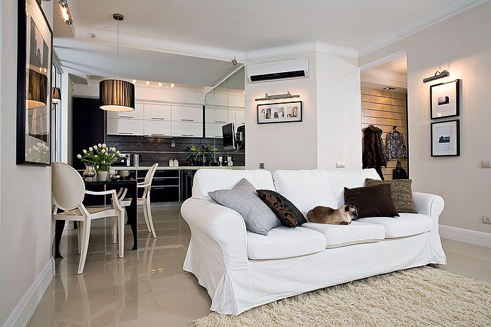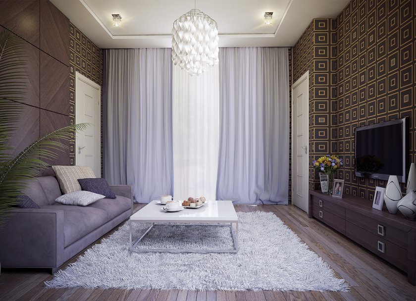 Lors de la conception d'une petite salle, vous devez placer correctement les accents et souligner le style choisi avec des éléments intérieurs. Les meubles volumineux et massifs réduiront l'espace et auront l'air inesthétiques.
