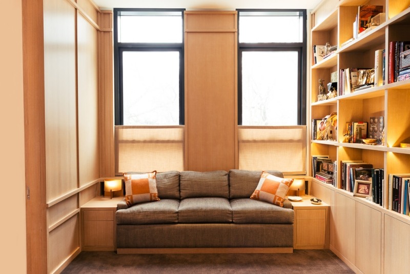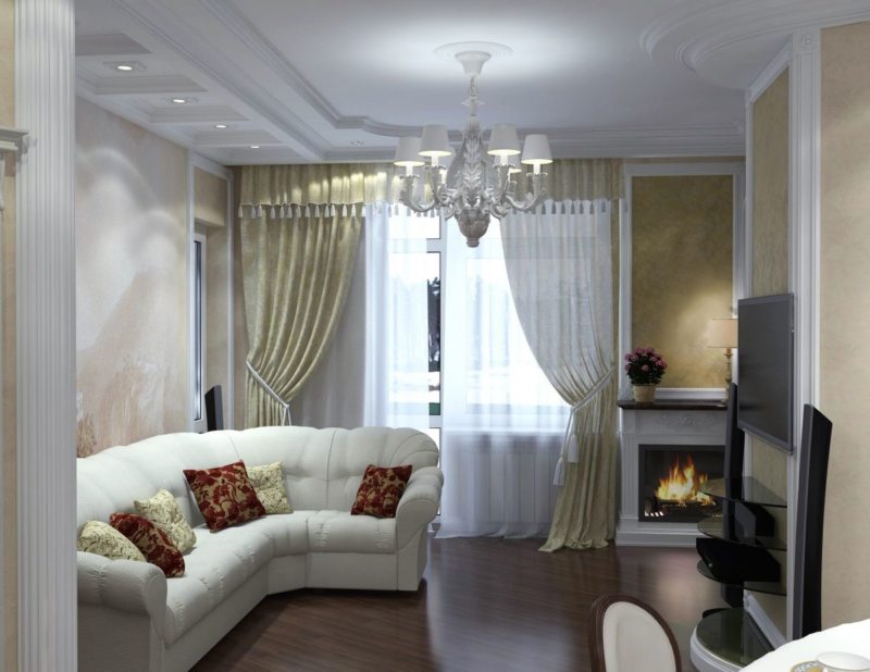 Le style classique dans des tons sobres est mieux adapté à une pièce rectangulaire.