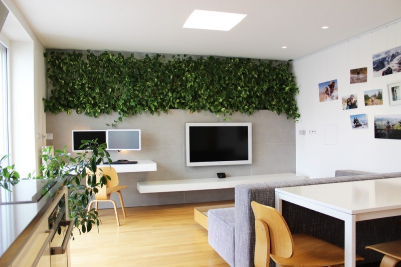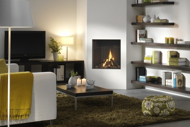 - Au lieu d'un mur qui prend beaucoup de place, vous pouvez créer des étagères suspendues avec un éclairage individuel.
