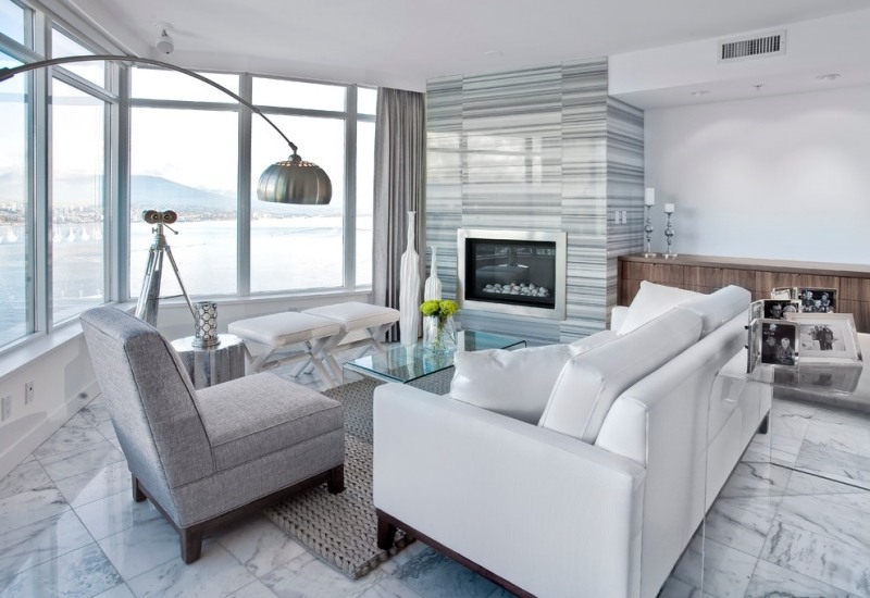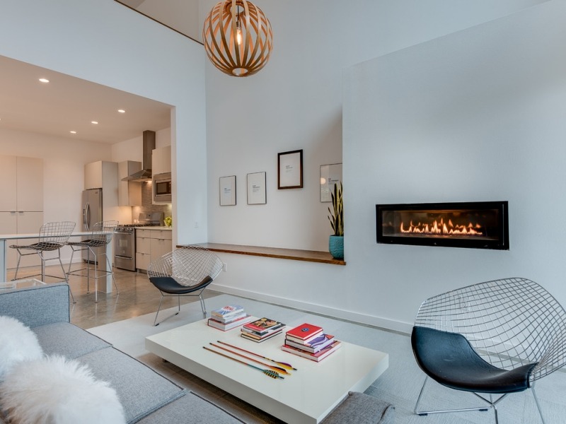 Ce style est actuellement très populaire et en demande, car il combine les vestiges du passé mélangés aux dernières innovations. Il n'est pas multicomposant et combine des éléments intérieurs pratiques et fonctionnels avec un design calme, des couleurs claires. Le style moderne du salon mettra l'accent sur le bon goût du propriétaire et sera assez à la mode. Un détail intéressant à l'intérieur peut être une cheminée.