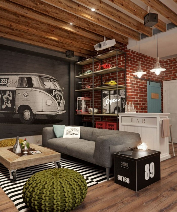 La version classique des murs dans une pièce compacte fait référence à un jeu de couleurs unique.