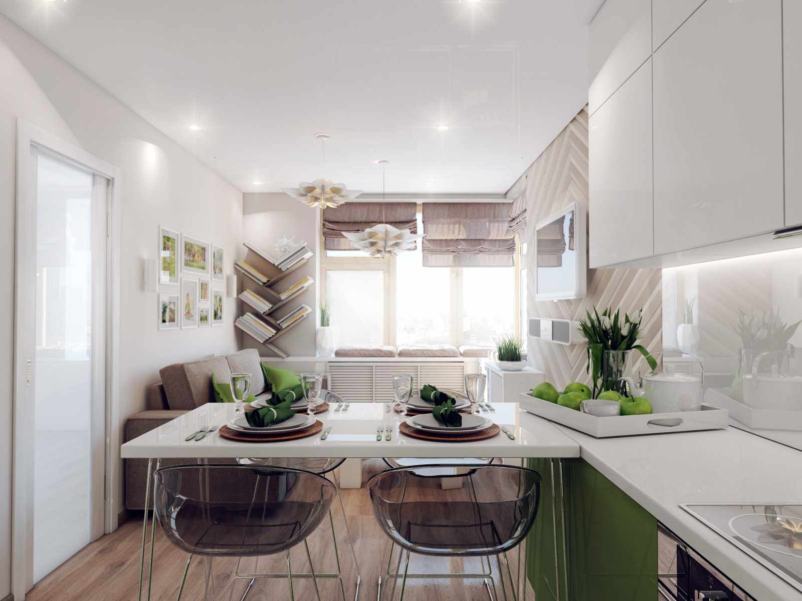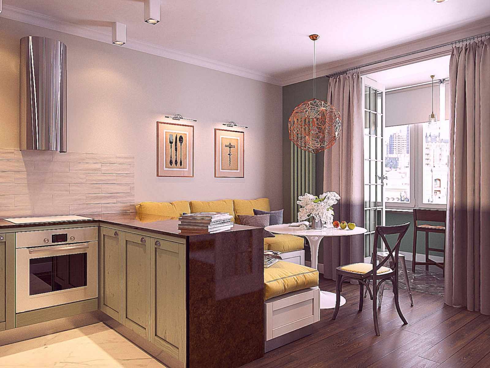 - Pour certaines femmes au foyer, la cuisine est un monde à part où vous pouvez être seule avec vous-même. Lors de la connexion de deux zones, une telle opportunité devient impossible.
