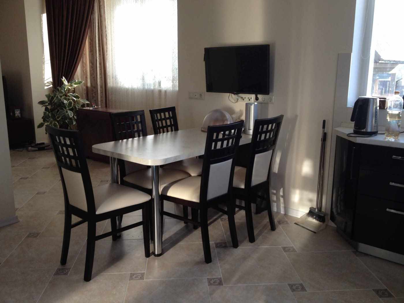 Il est installé sur le petit côté de la pièce, vous pouvez donc augmenter le métrage sur lequel la salle à manger sera située. |