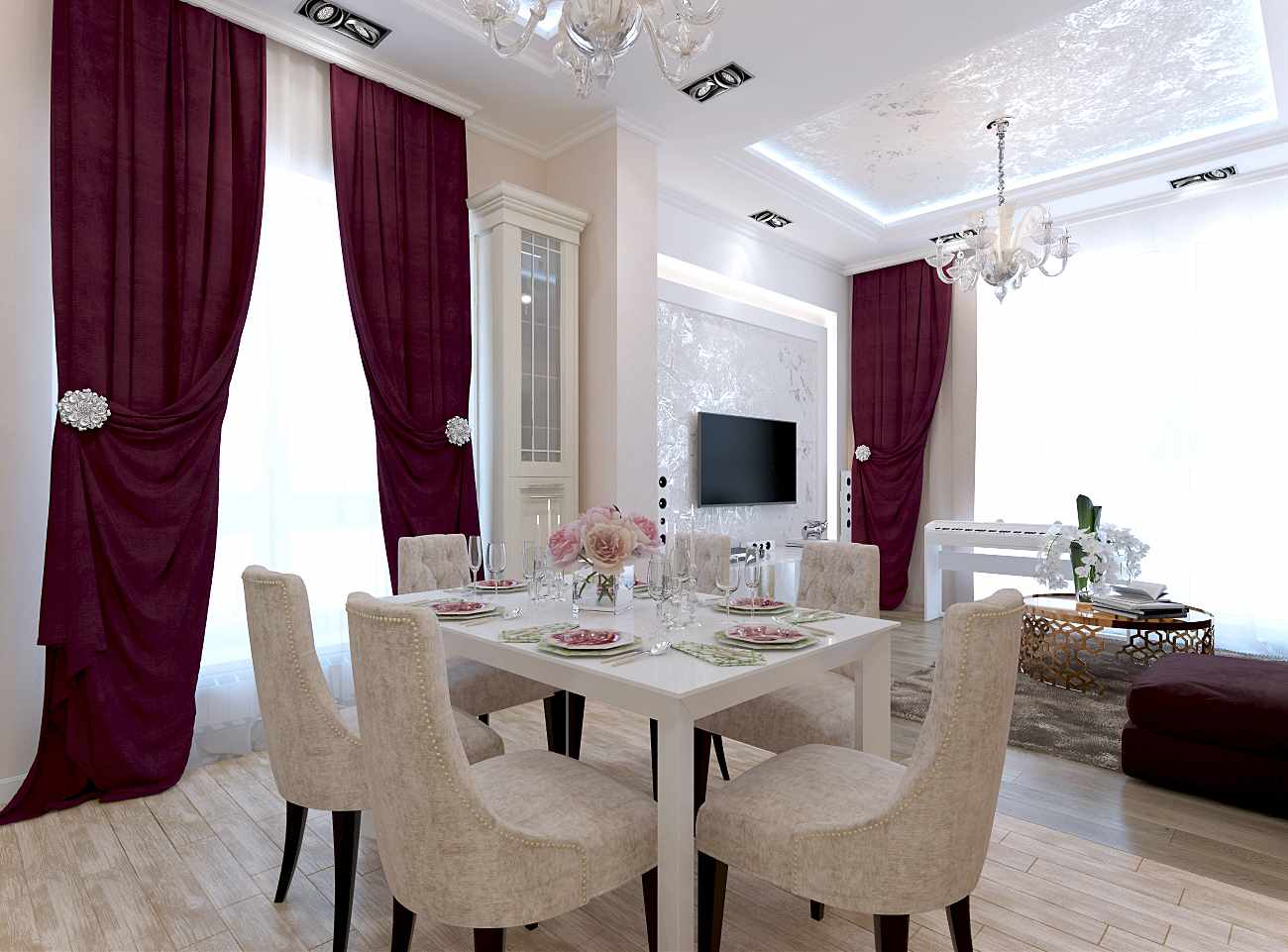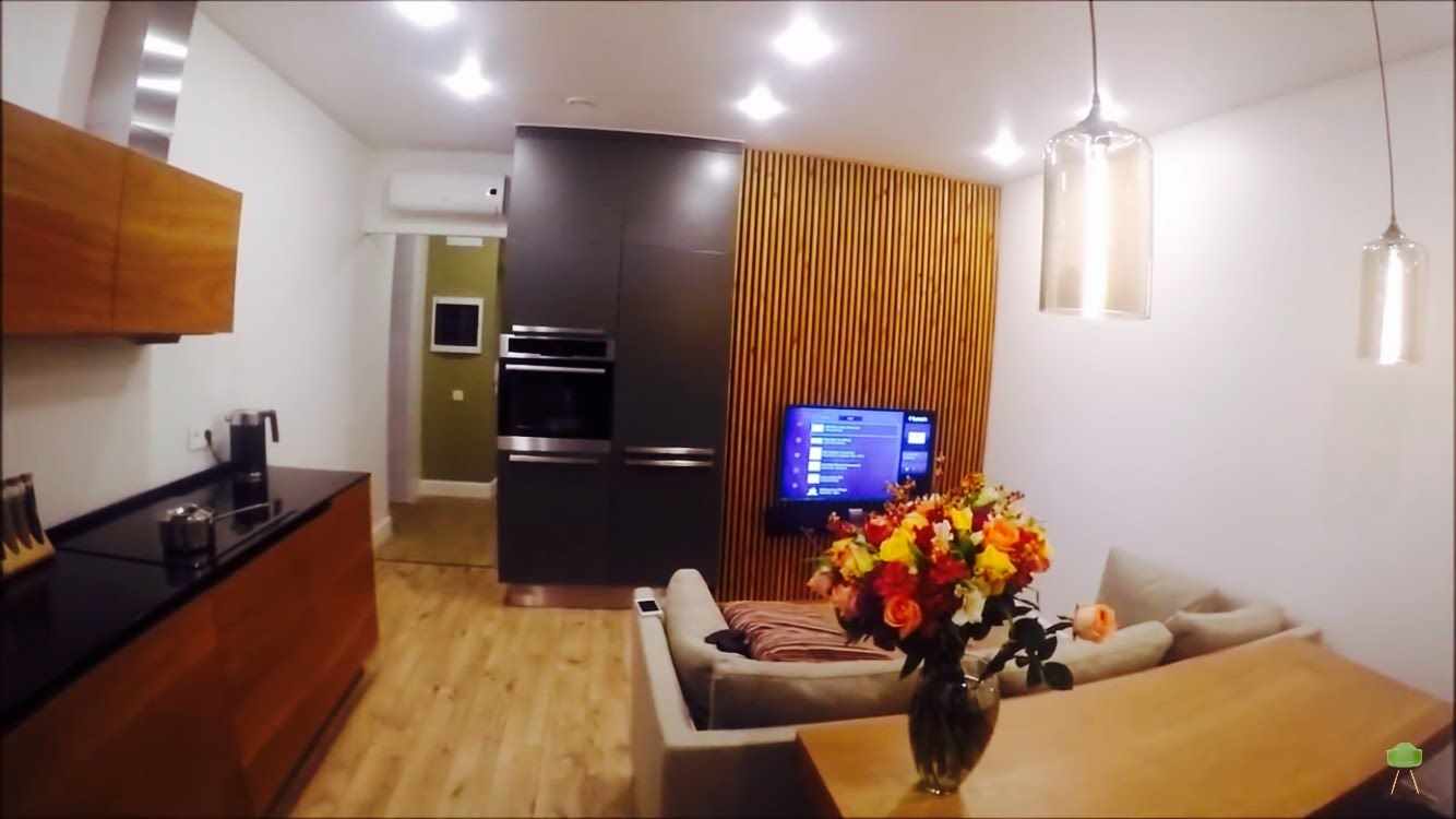- En connectant même les deux plus petites pièces, vous pouvez obtenir une pièce relativement grande et spacieuse. Avec des priorités correctement définies, une planification compétente, l'intérieur a l'air à la mode et moderne.