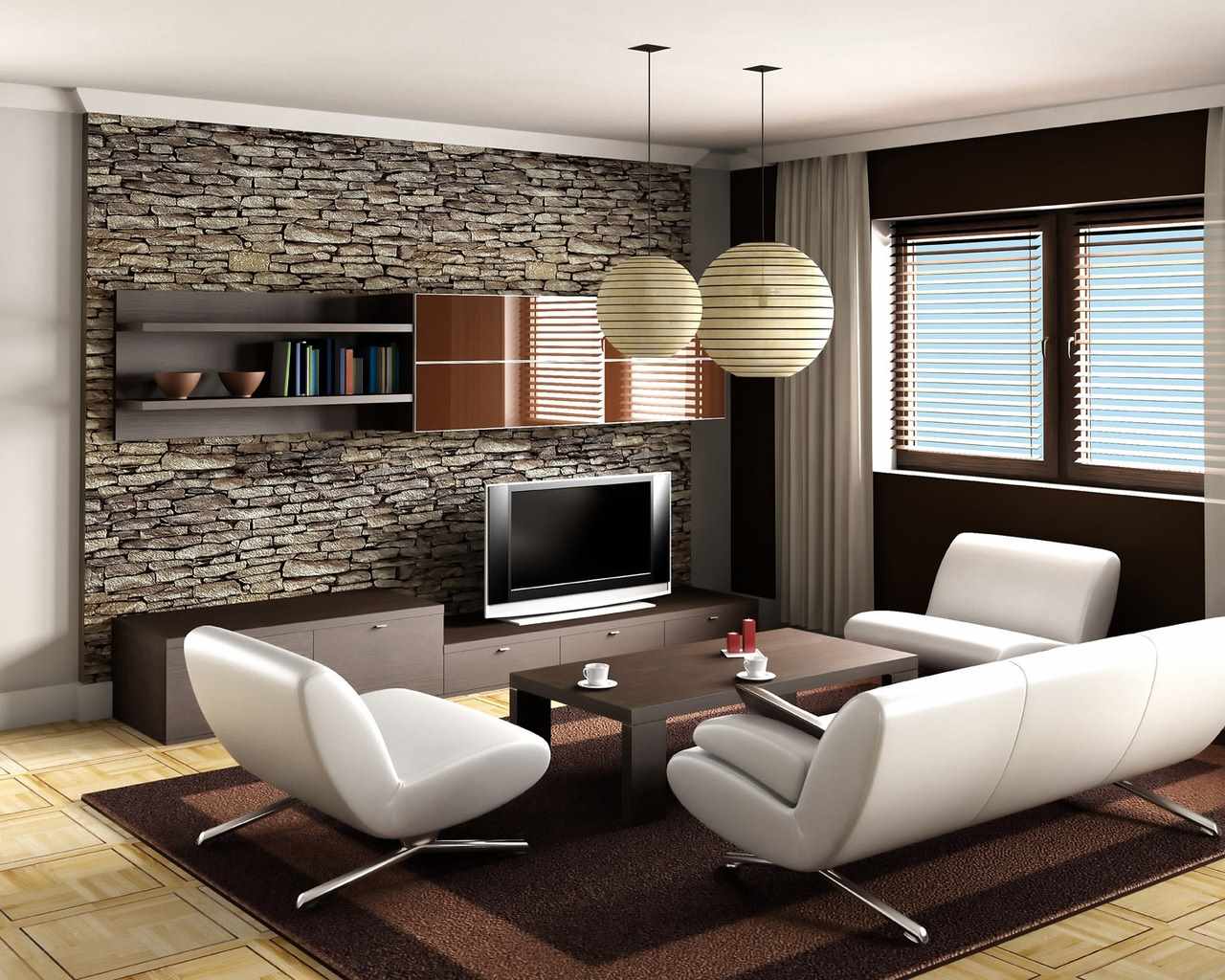 Les coins du salon peuvent être décorés avec de la pierre décorative