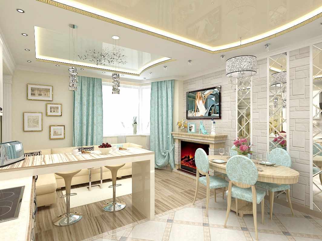 - 50 photos d'exemples de design d'un salon-cuisine de 25 mètres carrés: