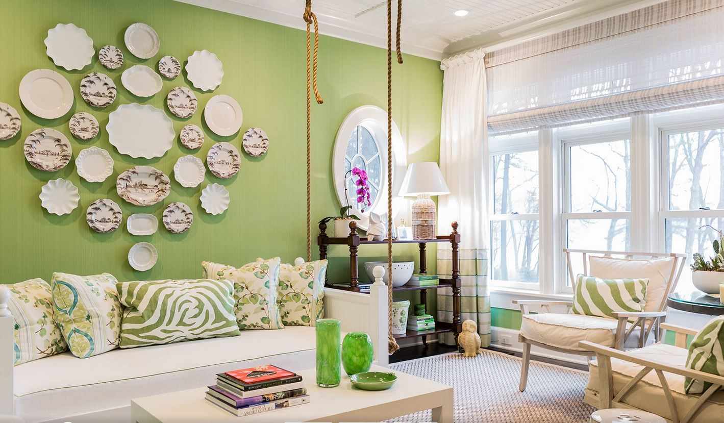 De nombreuses nuances de vert apaisent, apaisent. Ils aideront à remonter le moral tôt le matin, à se calmer après une journée bien remplie. Dans le salon, il ne devrait pas prévaloir, il vaut mieux que le vert se présente sous la forme d'accents.