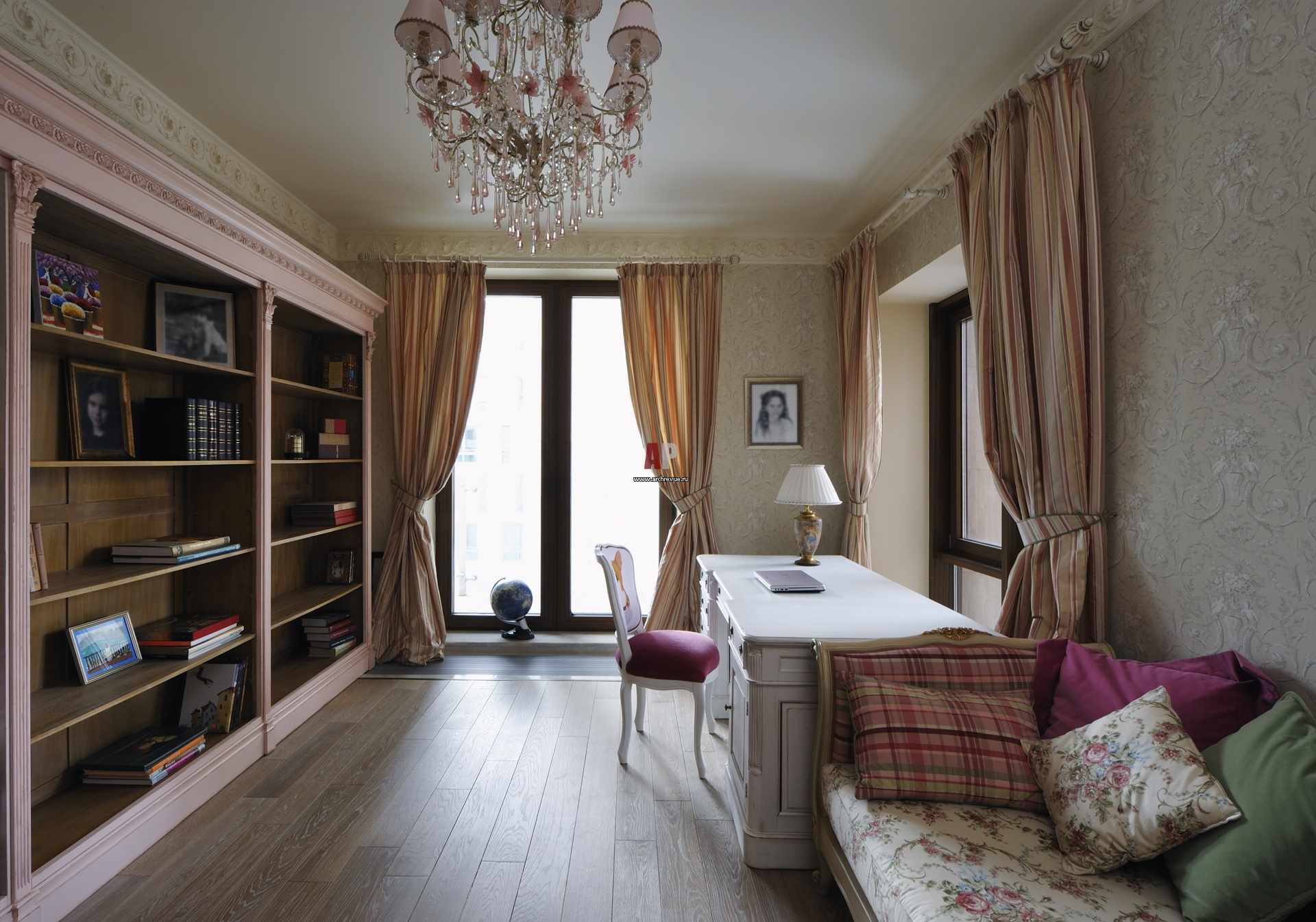 Le plafond est plat, blanc. Les murs sont solides, vous pouvez ajouter une petite teinte. Parquet ou stratifié de haute qualité est posé sur le sol, dans certains cas, le sol en polymère est coulé.