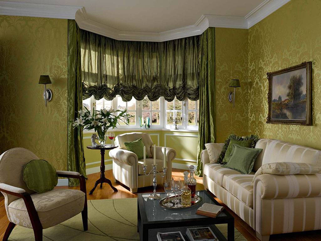 Rideaux pour le style de la pièce et la couleur du papier peint avec des meubles