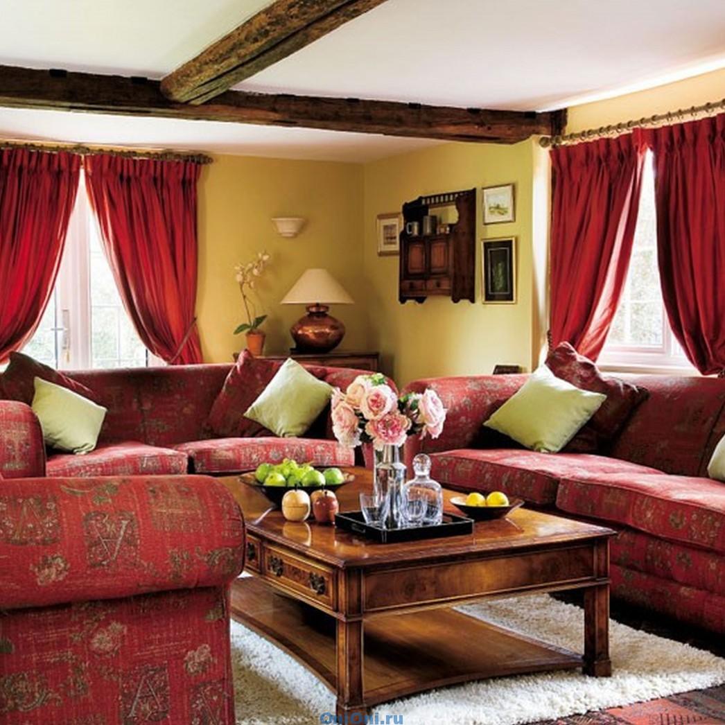 Les rideaux rouges sont rarement utilisés, le plus souvent en combinaison avec un ensemble en bois naturel. Cette couleur noble accentue le luxe du salon.