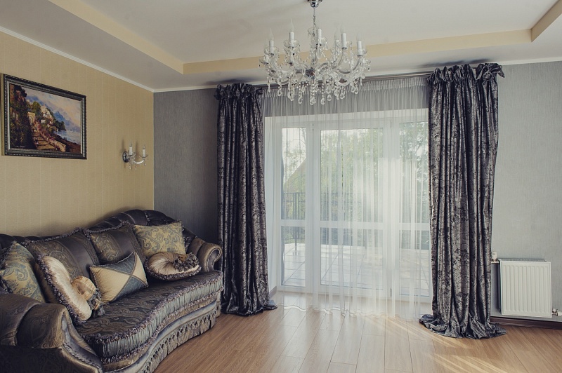 - Les fabricants modernes créent des collections spéciales avec la sélection parfaite de rideaux, tissus d'ameublement, textiles avec imprimés pour oreillers et tulle délicat. De telles options facilitent grandement la recherche de rideaux pour le salon.