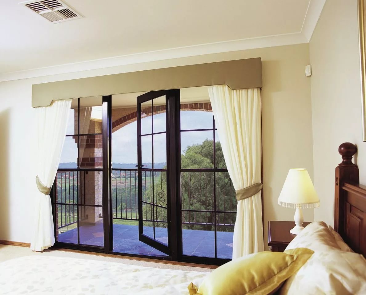- Vidéo: rideaux dans une fenêtre du salon avec une porte de balcon