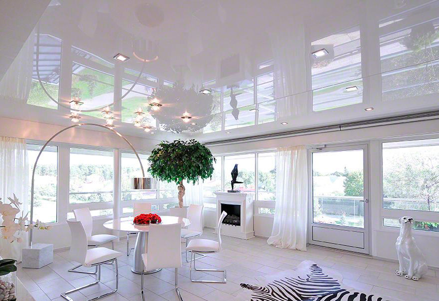 Le plafond brillant peut être choisi dans n'importe quelle couleur conformément à l'idée de conception