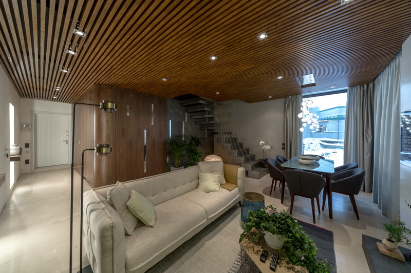 Le plafond blanc mat agrandit la pièce et rend la lumière intérieure et libre