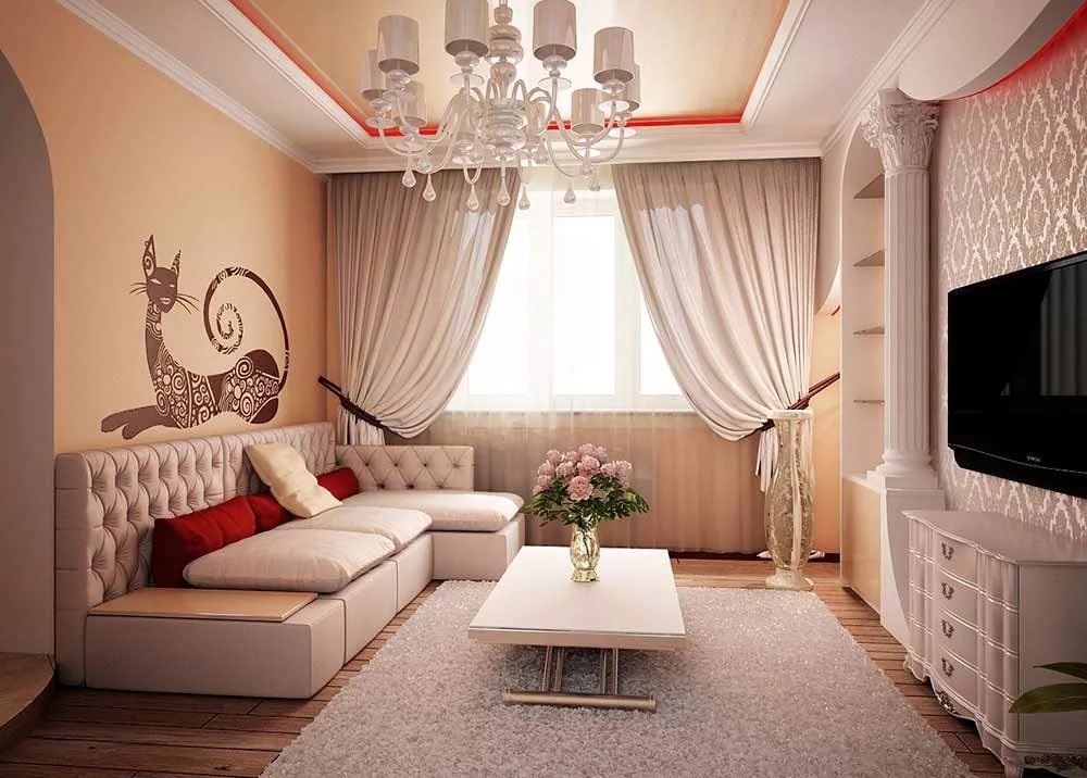 La conception du revêtement de plafond dépend des caractéristiques de conception du salon, de la hauteur des murs, de la disposition de la pièce et du style de l'intérieur