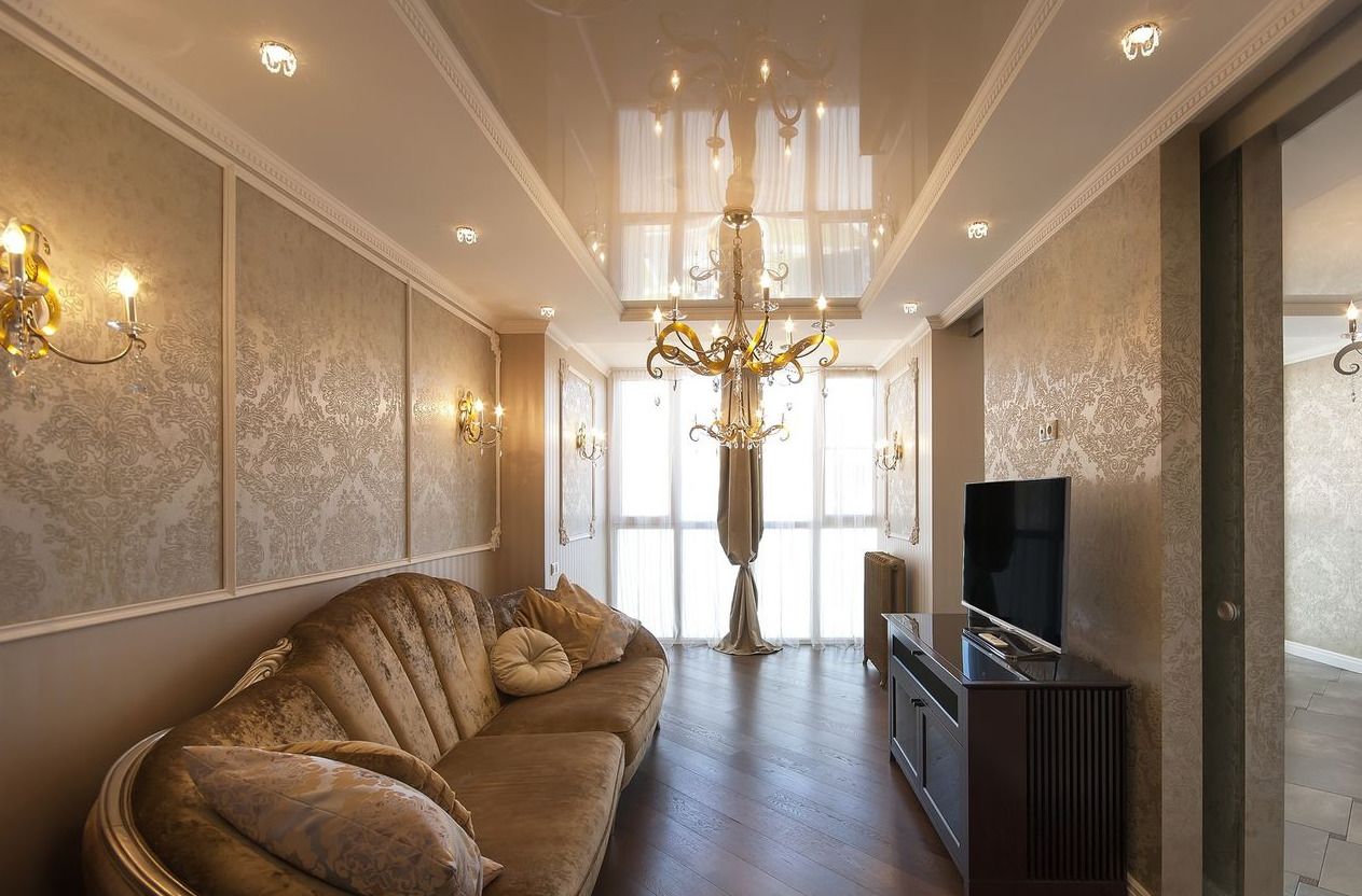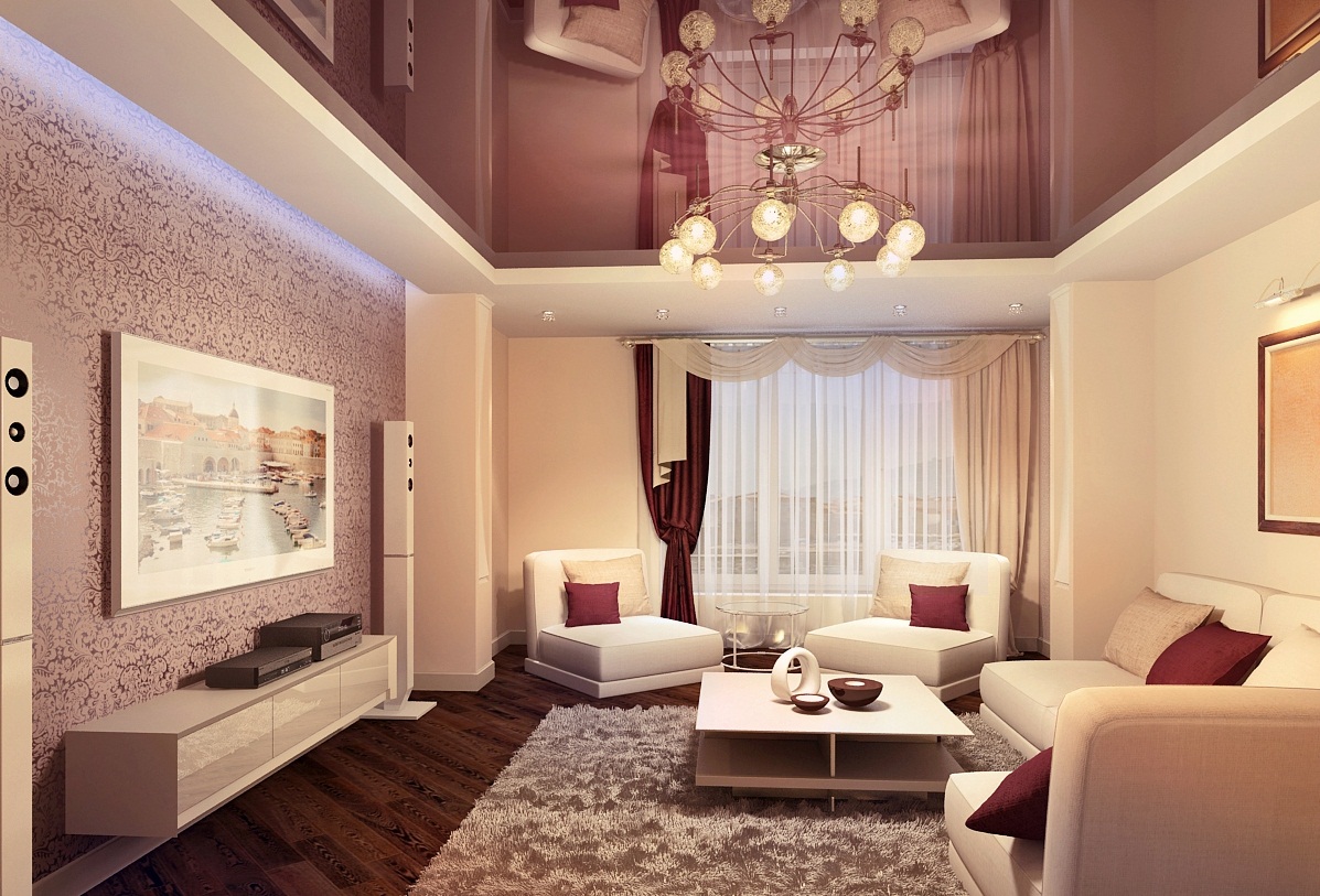 Les plafonds tendus sont des revêtements modernes qui vous permettent d'effectuer des réparations rapidement, efficacement et sans problème inutile. Dans le même temps, le choix d'un film qui correspond à la couleur et à la texture est beaucoup plus facile que tout autre matériau. Une approche individuelle du développement d'un projet d'aménagement de salon contribuera à créer une atmosphère agréable pour plusieurs années à venir.