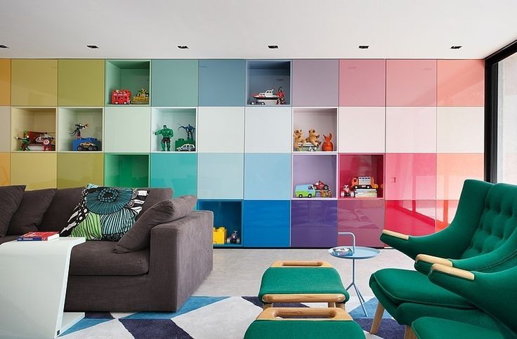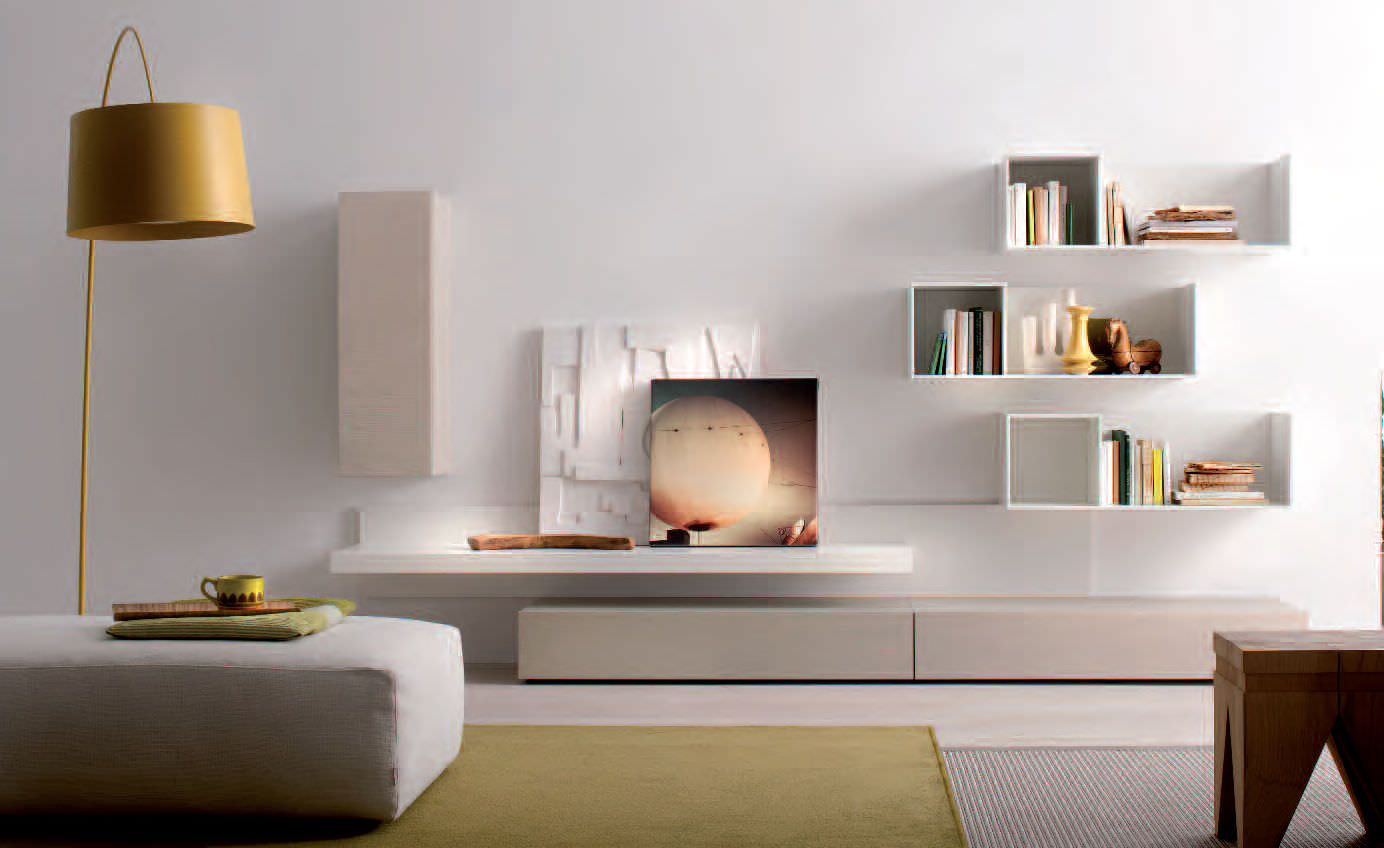 Les supports sont conçus pour ranger des livres, des petits objets pour un usage quotidien, des objets décoratifs. Cette conception est rendue «sourde» ou traversante, transformable ou sectionnelle. Pour agrandir l'espace, des fragments de miroir sont intégrés dans des parties distinctes du rack.