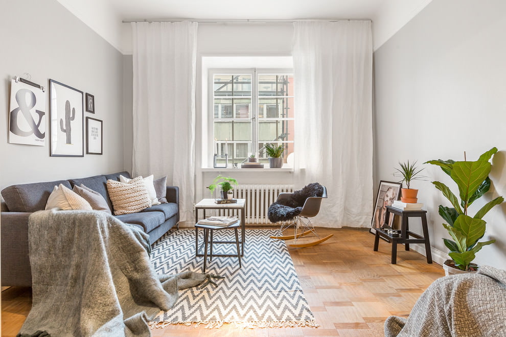 Tout d'abord, un endroit pour un canapé et une télévision est sélectionné, et seulement ensuite le reste du mobilier est joué