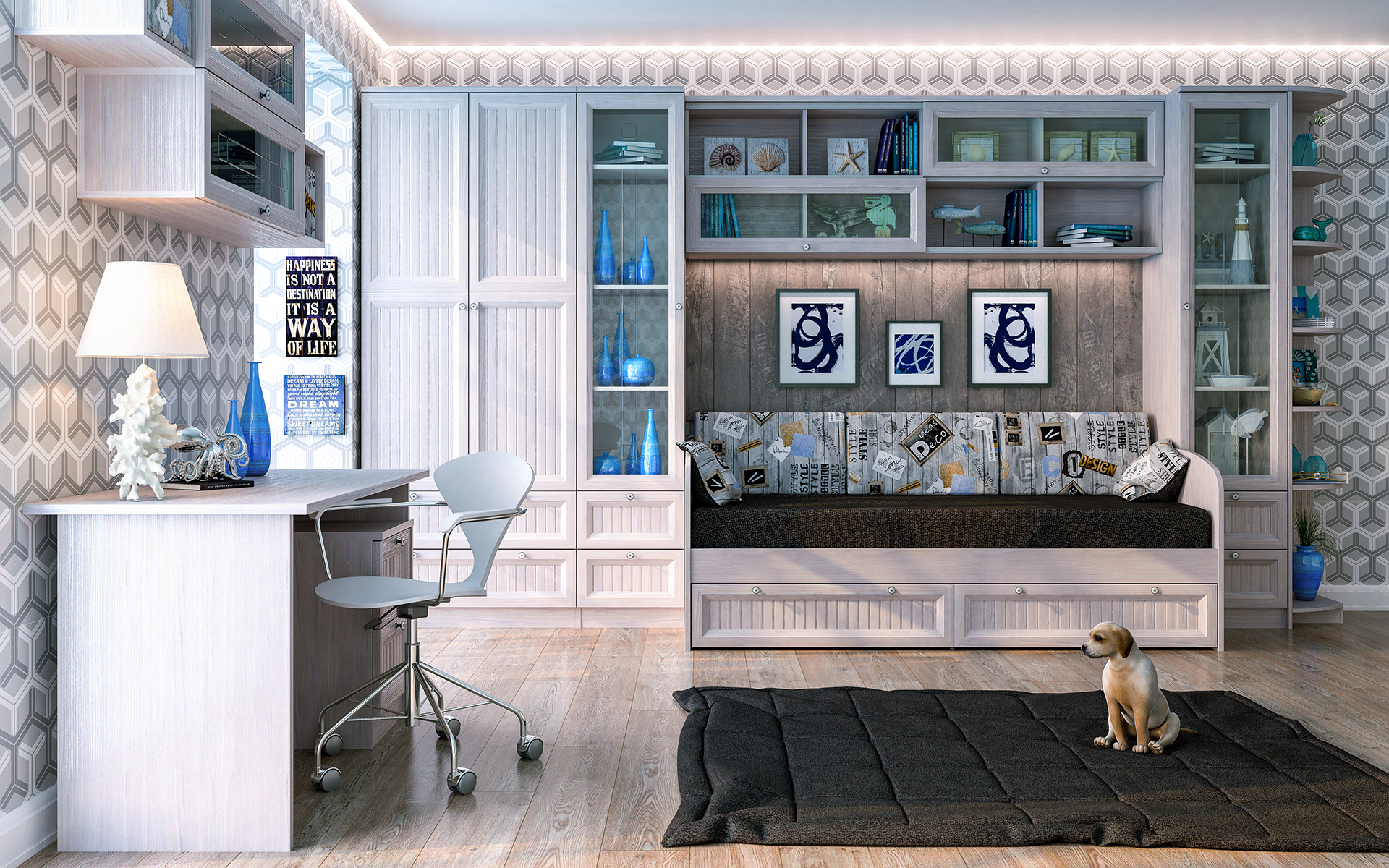 Selon le style choisi, la situation suppose une prédominance de meubles d'armoire, modulaires et rembourrés.Dans certains styles, même les objets sans cadre pour s'asseoir, mentir, dormir sont autorisés. Les boutiques proposent des casques à part entière pour les styles de modernité et de classicisme, de Provence et de minimalisme, scandinave et high-tech. Certains des articles pour éco-style, rustique, grunge, brutalisme, devront être fabriqués dans l'atelier sur commande, créés de vos propres mains.