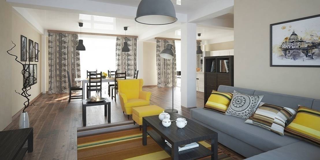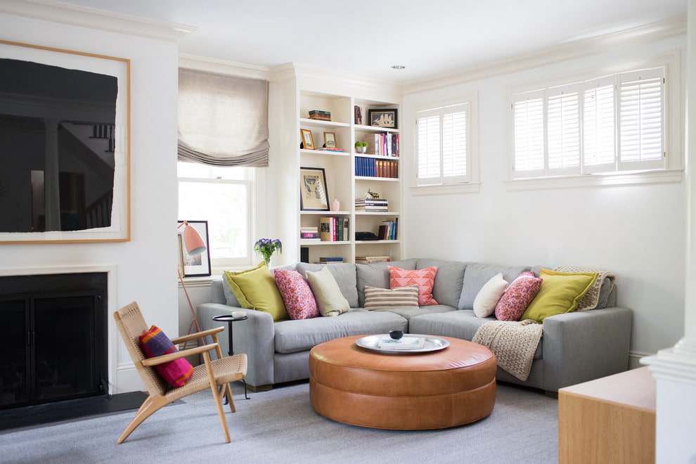 Pour faire des meubles rembourrés un accent, vous devez utiliser une couleur de rembourrage brillante et une finition neutre comme arrière-plan.