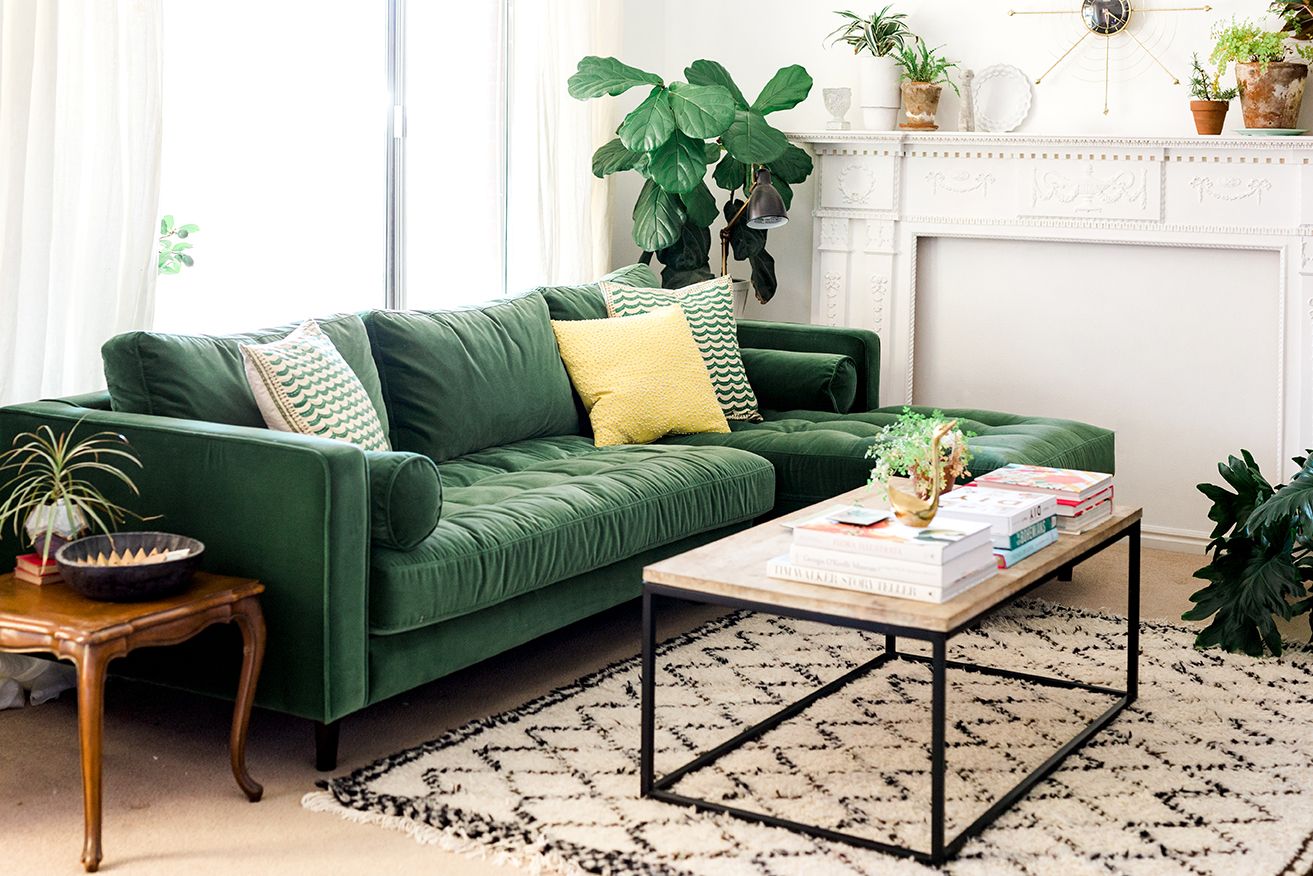 Un canapé en velours ou velours aux formes arrondies s'intégrera parfaitement dans le style classique.
