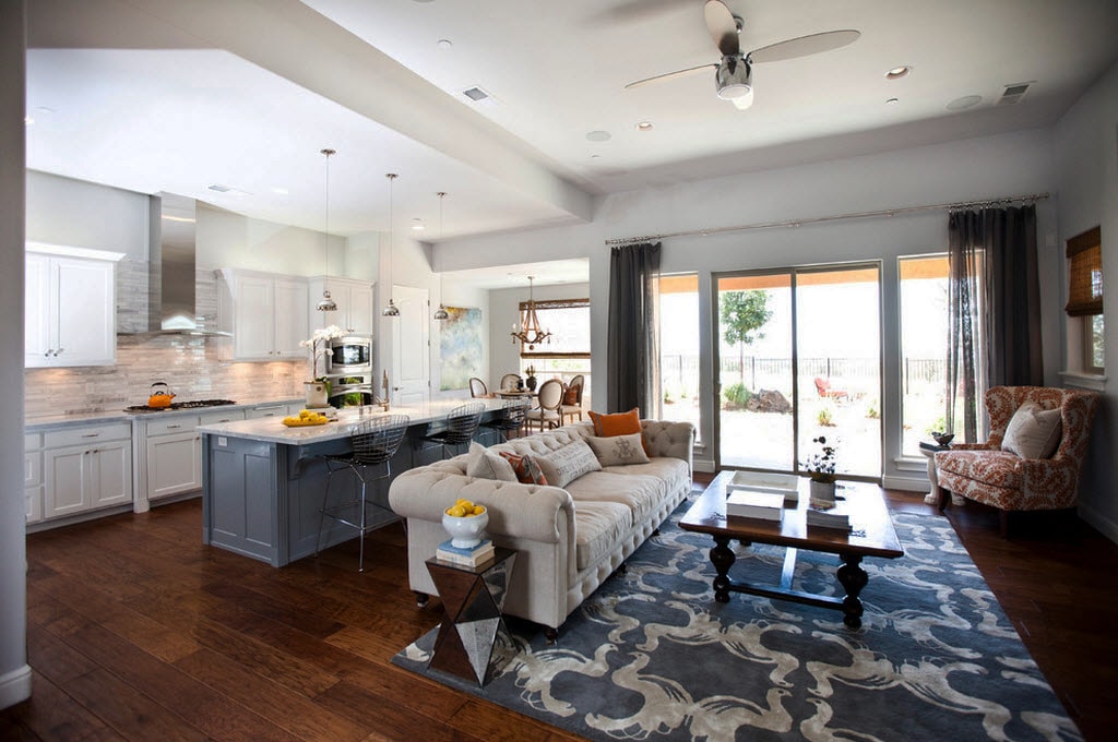 Un salon ouvert et de grandes fenêtres rendront la pièce ensoleillée et chaleureuse.