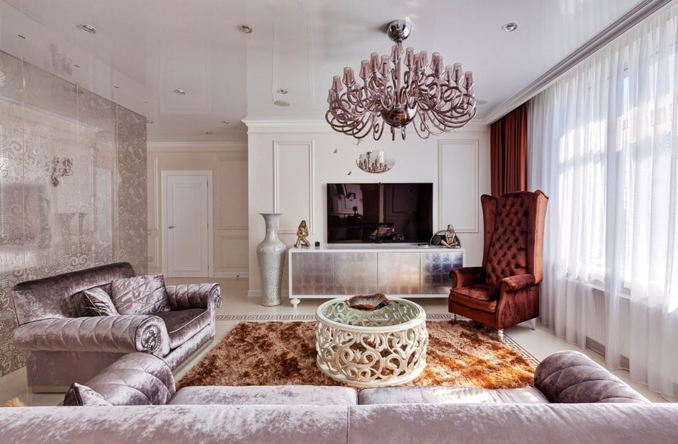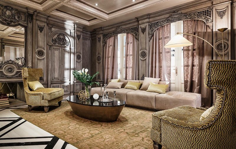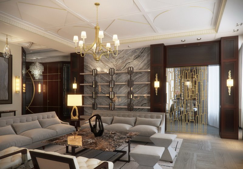 Salon Art Déco - c'est l'une des pièces principales, qui est située dans l'appartement ou dans la maison. Toutes les activités principales des hôtes se déroulent ici, à savoir se détendre devant la télévision, recevoir des invités ou organiser des fêtes de famille. Afin de rendre les invités à l'aise dans cette chambre et aux membres de la famille aussi confortables et aussi confortables que possible, il est d'abord nécessaire de développer un projet de conception et de le mettre en œuvre dans la pièce dont vous avez besoin.