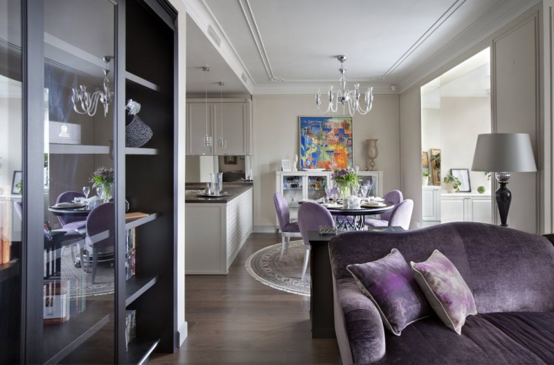 Lors de la décoration, des matériaux coûteux et naturels sont utilisés: cuir véritable, bois, acier, verre et céramique. Très souvent, dans une telle conception, vous pouvez trouver une bande ou des transitions contrastées, ainsi que des lignes claires, parfois des formes angulaires et en zigzag. L'Art Déco utilise des solutions de design des années 30 et 40 du siècle dernier.