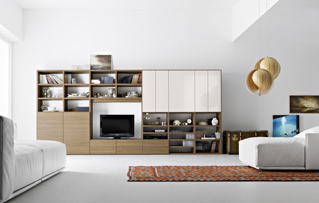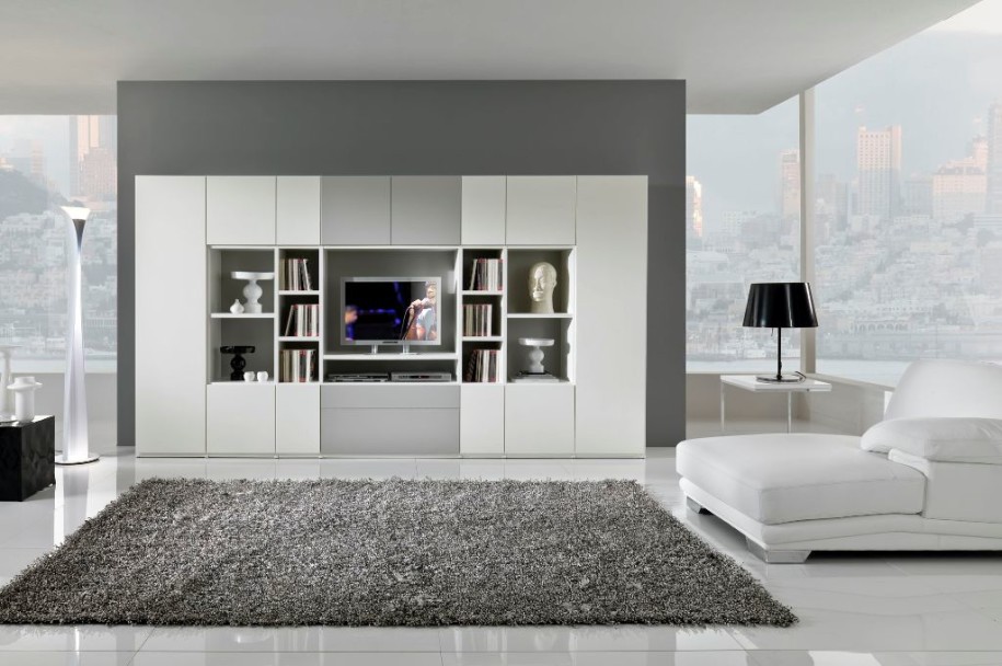 Lorsque vous utilisez le style du minimalisme à l'intérieur du salon, ils se tournent généralement vers des systèmes de meubles modulaires.