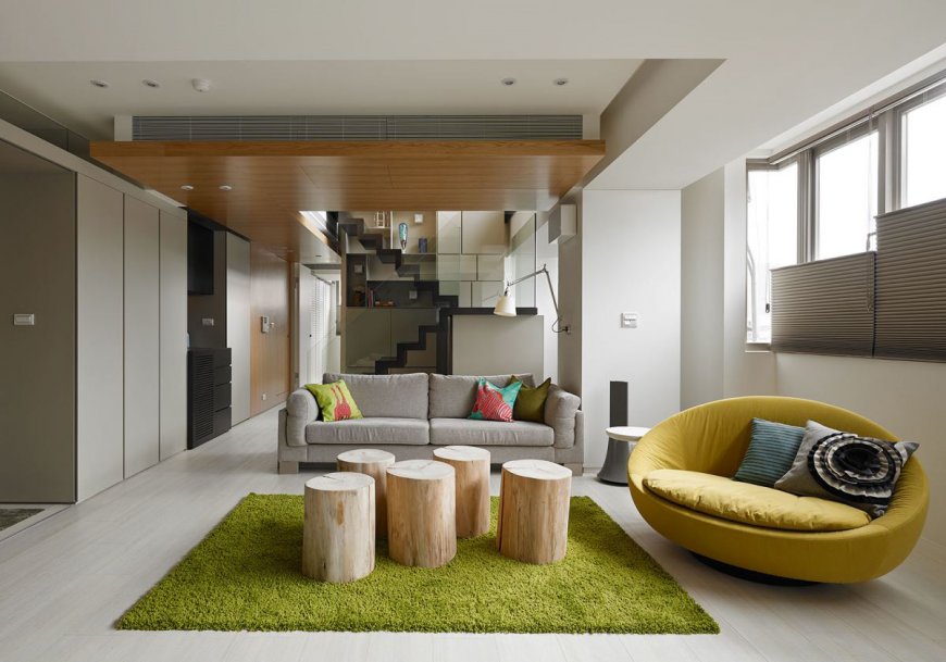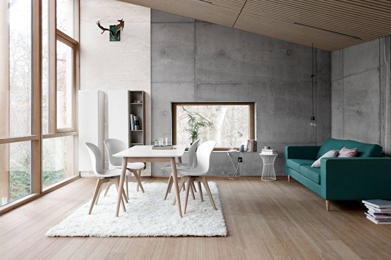 L'intérieur de la salle dans le style du minimalisme attire l'attention, en particulier le mobilier. Sa petite quantité devrait fournir une concision. Si vous souhaitez apporter une sorte de variété à la décision de conception, un choix naturel est un arbre naturel de différentes couleurs.