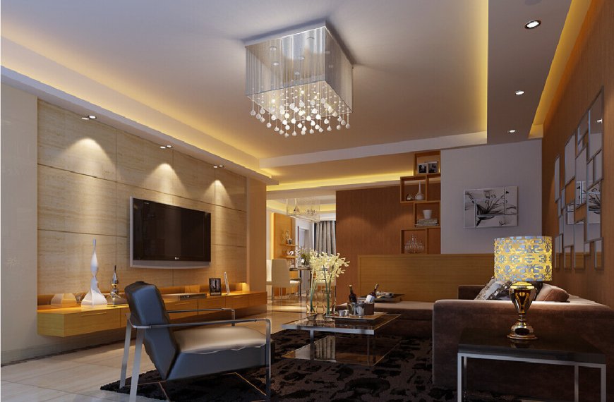 Le plafond est un endroit qui peut être décoré avec un bel éclairage créatif. Le lustre qui illumine la pièce avec la lumière peut parfaitement recréer l'atmosphère nécessaire, en harmonie parfaitement avec l'arrière-plan de tout le reste.