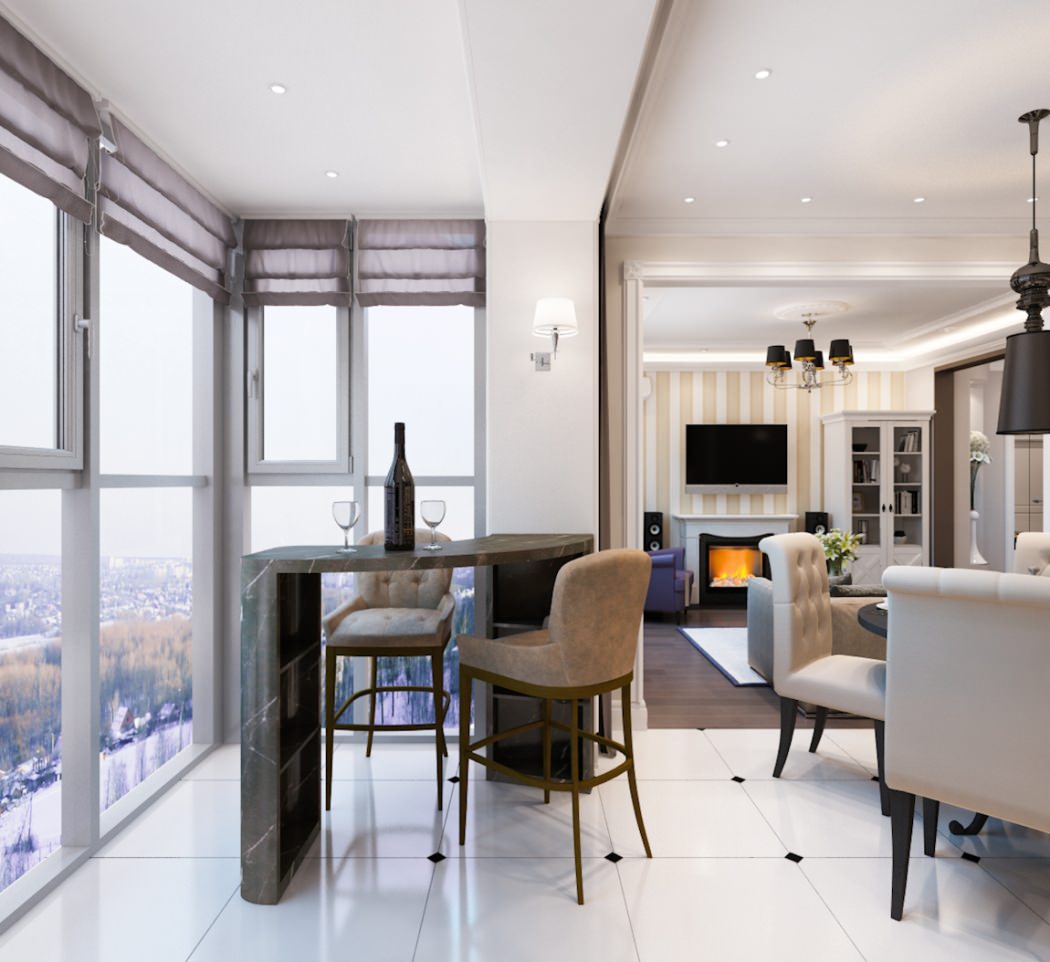 Le néoclassicisme convient aux pièces spacieuses inondées de soleil. Vous pouvez faire un tel intérieur dans une pièce avec de hauts plafonds et de grandes ouvertures de fenêtre.