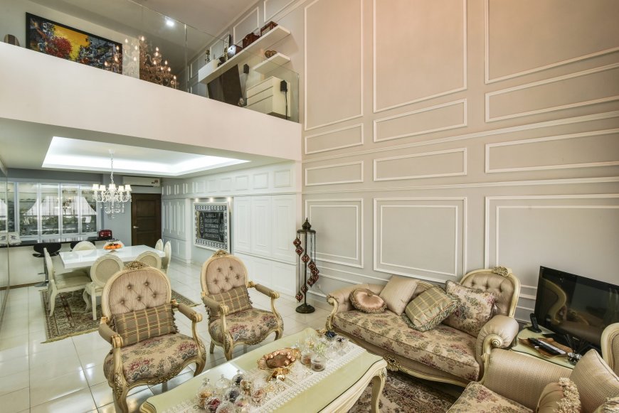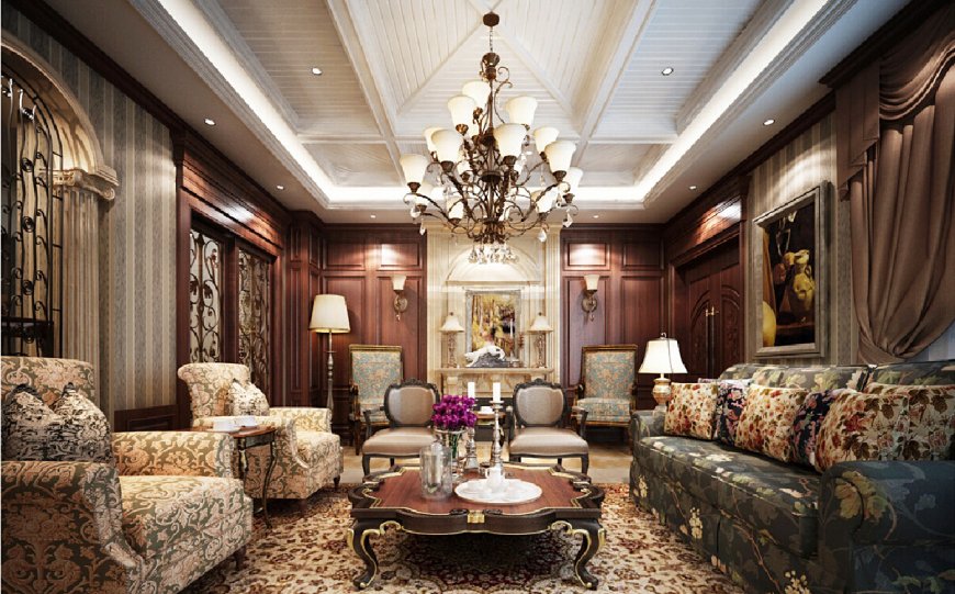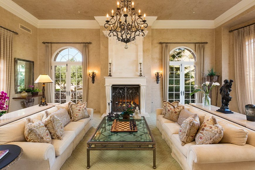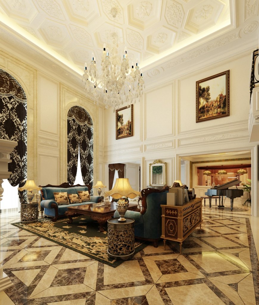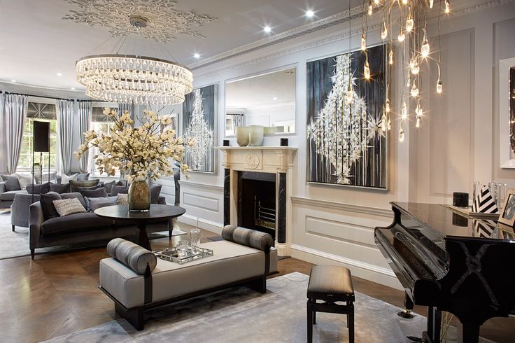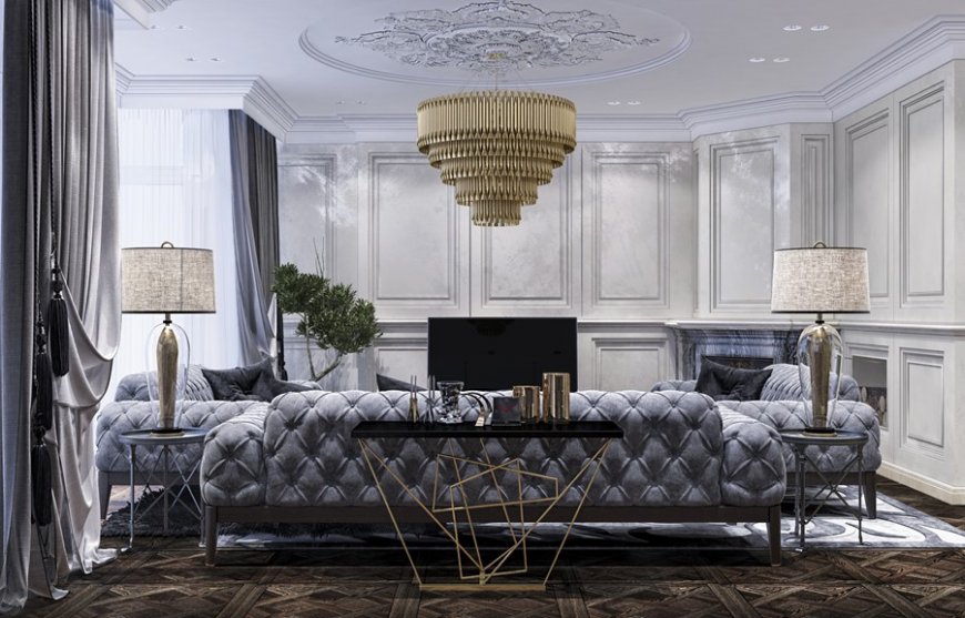 Les lustres en cristal luxueux sont un bon choix pour un salon de style néoclassique avec de hauts plafonds.